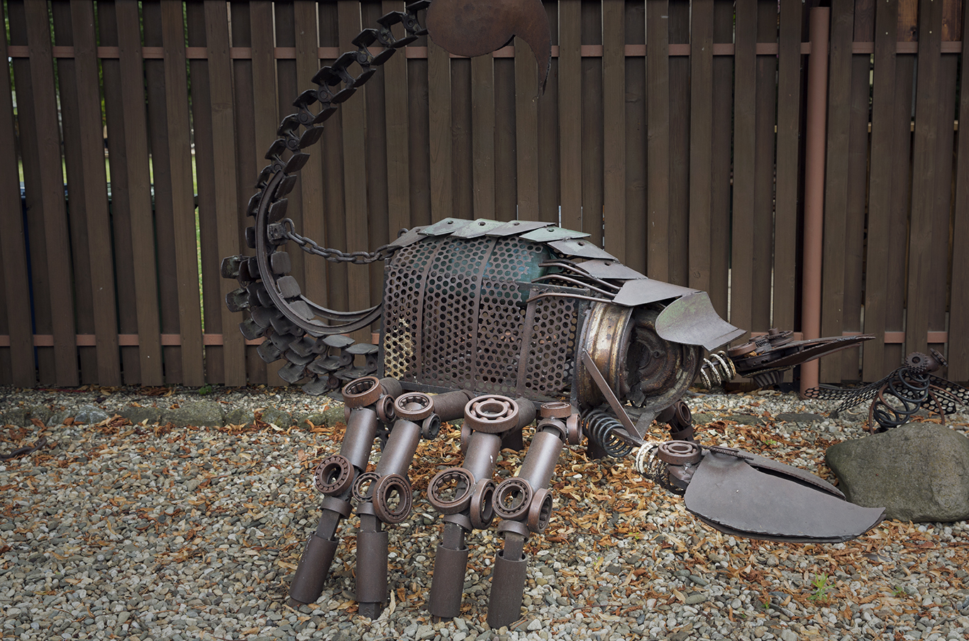Na webových stránkách se dočtete, že “i ze zdánlivě nepotřebného odpadu mohou vznikat věci, které jsou nejen krásné a zajímavé, ale i nadále užitečné.” Snaha “být majákem ve světě recyklace a ekologické osvěty” jim vážně vyšla: proč vyhazovat prázdný hasicí přístroj, když si z něj můžete vyrobit maketu tučňáka? Při pohledu na mnohem propracovanější exponáty zjistíte, že prakticky neexistuje zvíře, které by nešlo z kovošrotu vytvořit. A to je v době, kdy se posouváme z Evropy na východ mílovými kroky, skutečně velkou útěchou.