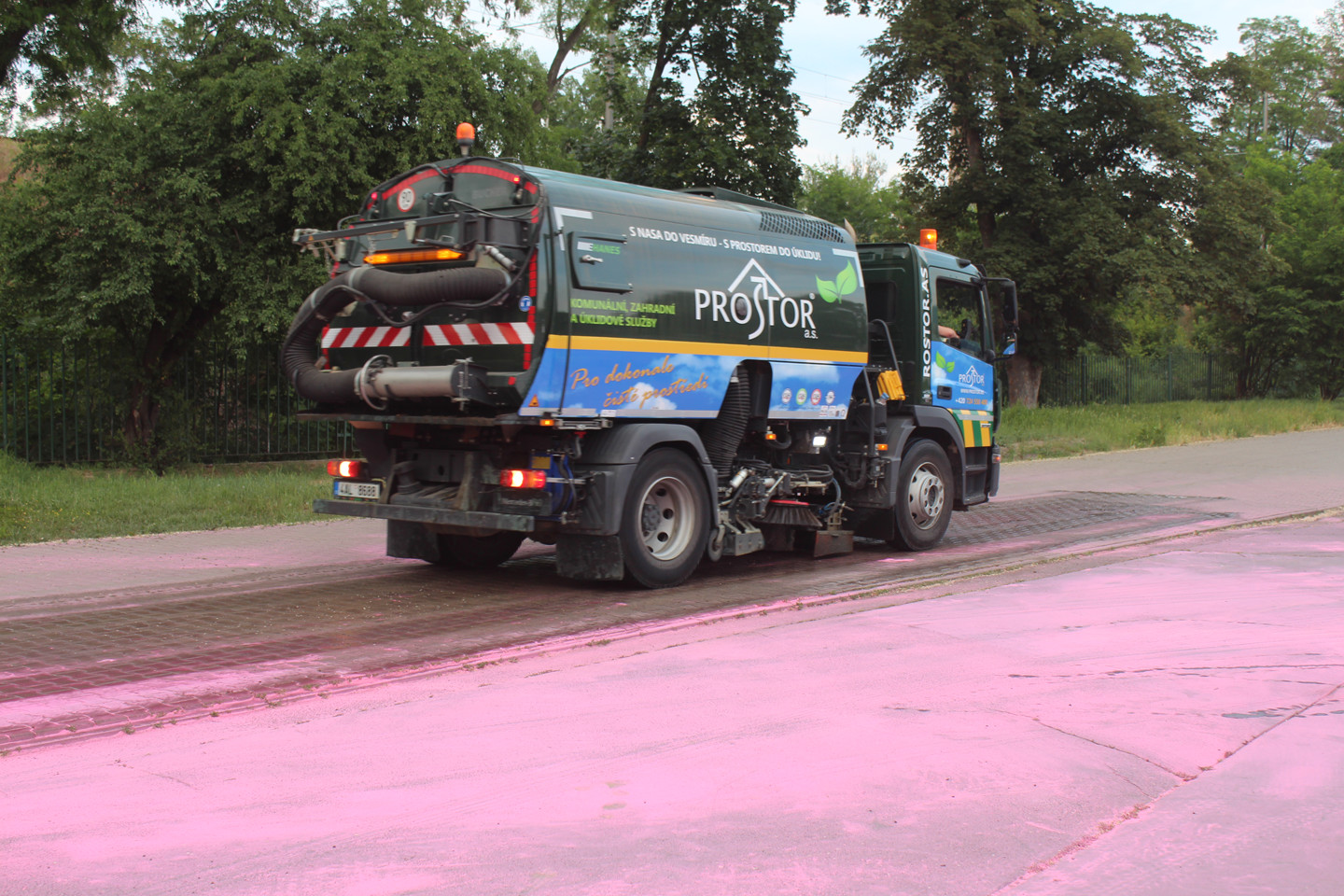 Po snídani s výhledem na Výstaviště jsme si přebrali vysílačky a středoškolský brigádníky. Ocitla jsem se skupinou osmnáctiletých kluků, kteří barvy házely už loni, a říkala si, jak to celý asi dám. Pokaždý, když dělám něco poprvý, jsem neskutečně nervózní. Řekla jsem si, že nejlepší asi bude nemachrovat a přiznat barvu – hahaha. Svěřila jsem se, že ten job dělám jen proto, že jsme s Marií kamarádky a že tak trochu vůbec netuším, co se po mě vlastně chce a co mám chtít já po nich. Taky jsem jim na rovinu řekla, že jsem růžový stanoviště bylo mojí podmínkou a ať se přes to přenesou. Všechno naštěstí vzali v pohodě.