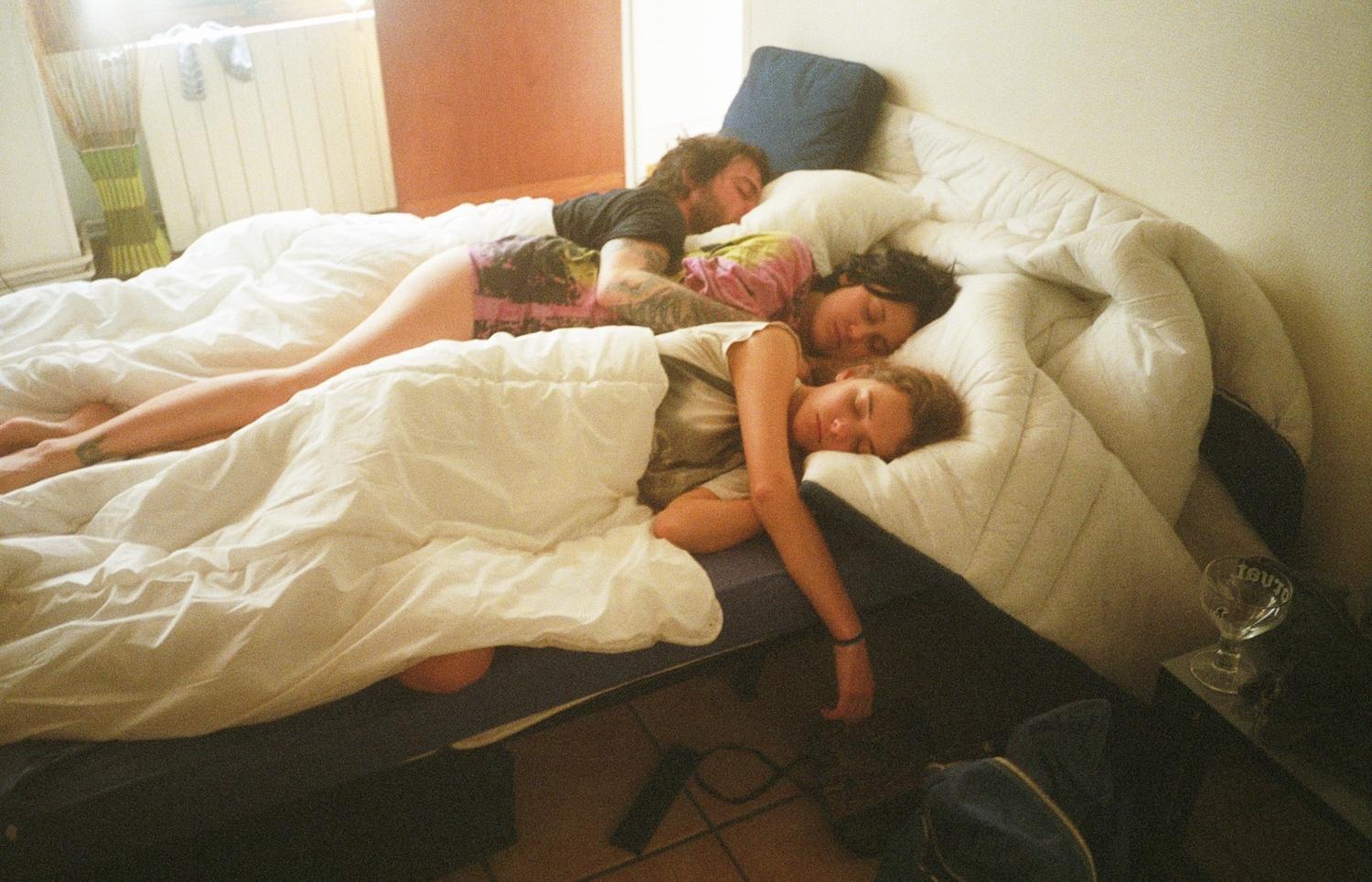 Cokoliv ve mě je cokoliv v tobě je Mooreova první newyorská sólo výstava, kombinovaná z fotek pořízených mezi lety 2011 a 2017. Jedna z nejpůsobivějších fotek ukazuje tři kamarády, kteří si pohrávají na matraci po noci strávené v Paříži, zhruba kolem roku 2014. Moore se ve skutečnosti vymotal z těchhle propojených těl, aby to zdokumentoval, než připraví smažené občerstvení na kocovinu. Jiná zobrazuje kanadskou antimodelku Alanu Derksen zírající do Moorovy kamery, rozšířené oči, oholená nakrátko a kolena podepsaná tetováním “Larry David” (pozn. americký komik, spisovatel, herec, dramatik a televizní producent). “Je pro mě náročný fotit někoho, o koho nemám fakt hlubokej zájem, ” vysvětloval Moore v rozhovoru pro Vice v roce 2015. A když focení těchhhle lidí působí tak magicky, proč se snažit to změnit?