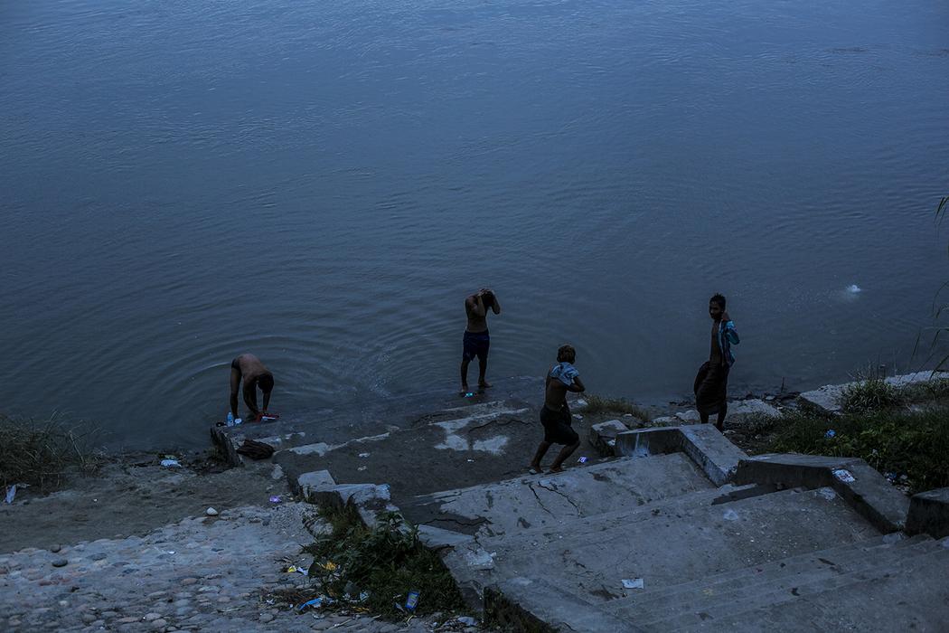 Kačjinové z Myitkyiny se umývají v myanmarské největší a nejdůležitější řece Irrawaddy.