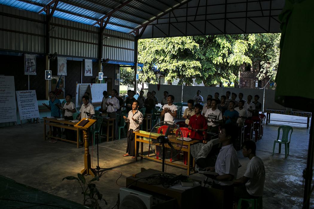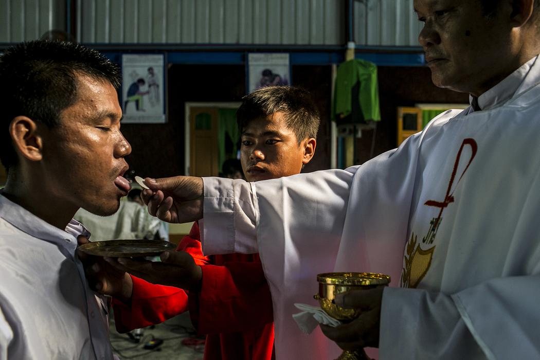 MG Bawn Hkaw, 23, je v centru jeden a půl měsíce a pomáhá navštěvujícímu katolickému knězi slavit mši pro Hkawng Luma, klienta, který je v centru Pat Jasan dva a půl měsíce. Bawn byl předtím ve dvou jiných táborech, ale v obou případech se opět vrátil k drogám, na kterých je závislý už od střední školy.