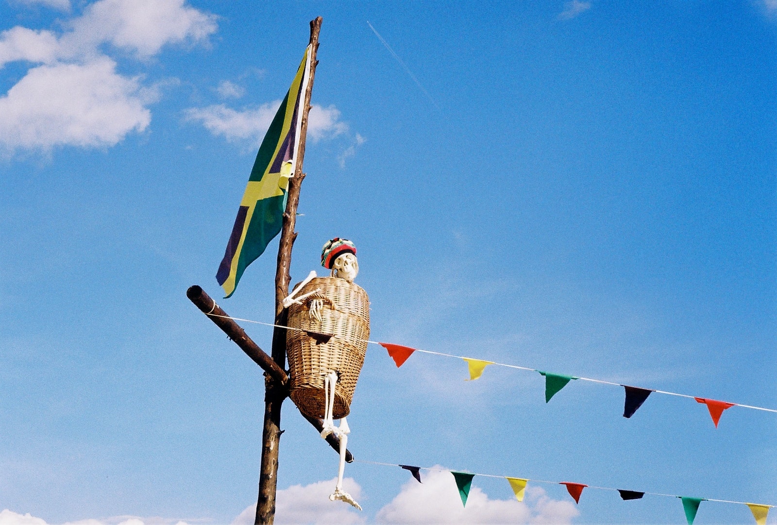 Na jednom konci vesnice se můj kluk zeptal jakési ženy s culíky a dětmi, jestli nám poradí (a líp než Google mapy, prosím), jak se na farmu Vranč dostat. Místní zrozpačitěla a snad se i trochu začervenala, než rozvážně ukázala směr a dodala: „Je to tam dobré.” K farmě se dostanete klasickou polně-lesní cestou oficiálně vedoucí k hradu. Už přes lány na vás mává jamajská vlajka. Barevné volátko míhající se ve větru tvoří nejvyšší bod danýho areálu. Na velké bráně stojí uvedeno Jamaica State. Pokud chcete vstoupit, musíte se stát členy Spolku konopné farmy. Dostanete i číslo určující kolikátý návštěvníci jste (já byla #2253). Proč je to třeba? „Kvůli EET a tak,” stručně shrnul týpek vedoucí vstupní administrativu, než nás pustil na pláž. Hřála jako ta skutečná přímořská, přestože se jedná o písčitou plochu uměle umístěnou doprostřed pole.