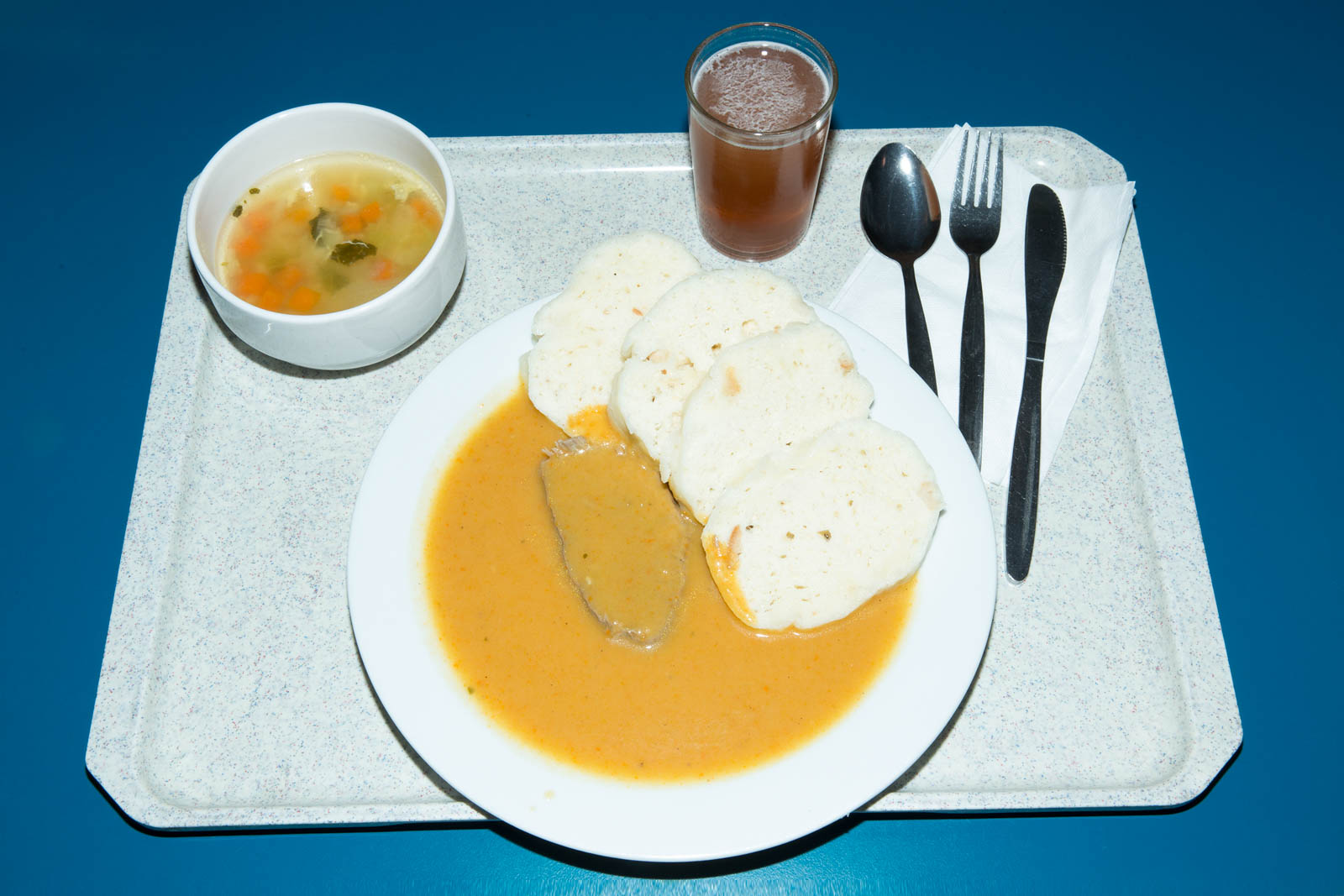 I když na našich výjezdech vyhledáváme vývařovny a bufety pravidelně, myslím, že v jídelně úřadu, navíc krajského, jsme ještě nikdy nebyli. V přízemí snad dvacetipatrové budovy poctivě vystojíme frontu, abychom mohli premiéru oslavit vývarem a svíčkovou, i když za ně platíme o něco víc než 85 Kč, což je cena za nejlevnější tříchodové menu. Od Petra se dozvídáme, že tu catering provozuje liberecká nemocnice, která dodává jídlo do 20 dalších míst. Zajímavé.