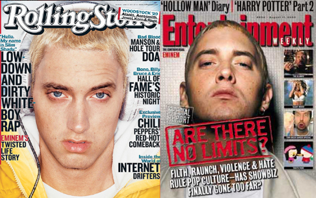 But Eminem’s true gift was making the violence and anger funny. His humour served as an effective communication tool to lure in a new generation of rap fans. He weaved together semi-autobiographical real-world elements with vivid imaginaryland settings through puns, turns of phrase, and double entendres that were more clever than he’s often given credit for as a shock rapper. Reviews were largely positive, but even the not-so positive ones at least did him the courtesy of praising his comical creativity and extensive vocabulary. Critic Nathan Rabin at The AV Club noted that aside from Slim Shady sometimes being “sophomoric and uninspired,” Eminem’s “surreal, ultraviolent, trailer-trash/post-gangsta-rap extremism is at least a breath of fresh air in a rap world that’s despairingly low on new ideas.” But not all the adults were laughing.