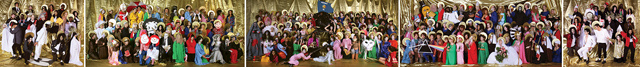If you were to squint very hard, you might recognise one section of the tiny tableau above from last year’s VICE Photo Issue. That image, Self-Portrait as Nun with Some of My Mother’s Favourite Famous People (in The Forerunners of Christ with Saints and Martyrs of the “Fiesole San Domenico Altarpiece” by Fra Angelico), is just one piece of a large-scale 5 channel music video, in which more than two hundred of Jamie Warren‘s friends from Kansas City and beyond harmonise to the tune of a Stevie Wonder song. I don’t want to spoil the surprise, but the video piece climaxes with a duet between Warren, dressed in garbage bags as Missy Elliot, and the little demon girl from The Exorcist.
