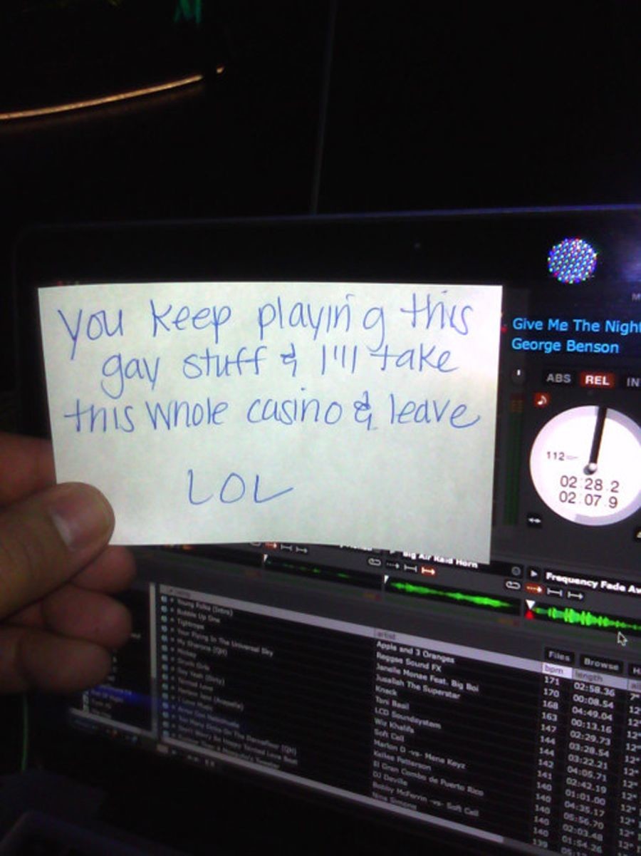 No Breasts, No Requests is a Tumblr of notes people have handed to DJs while they are busy doing the easiest job in the world. To see more, go here.