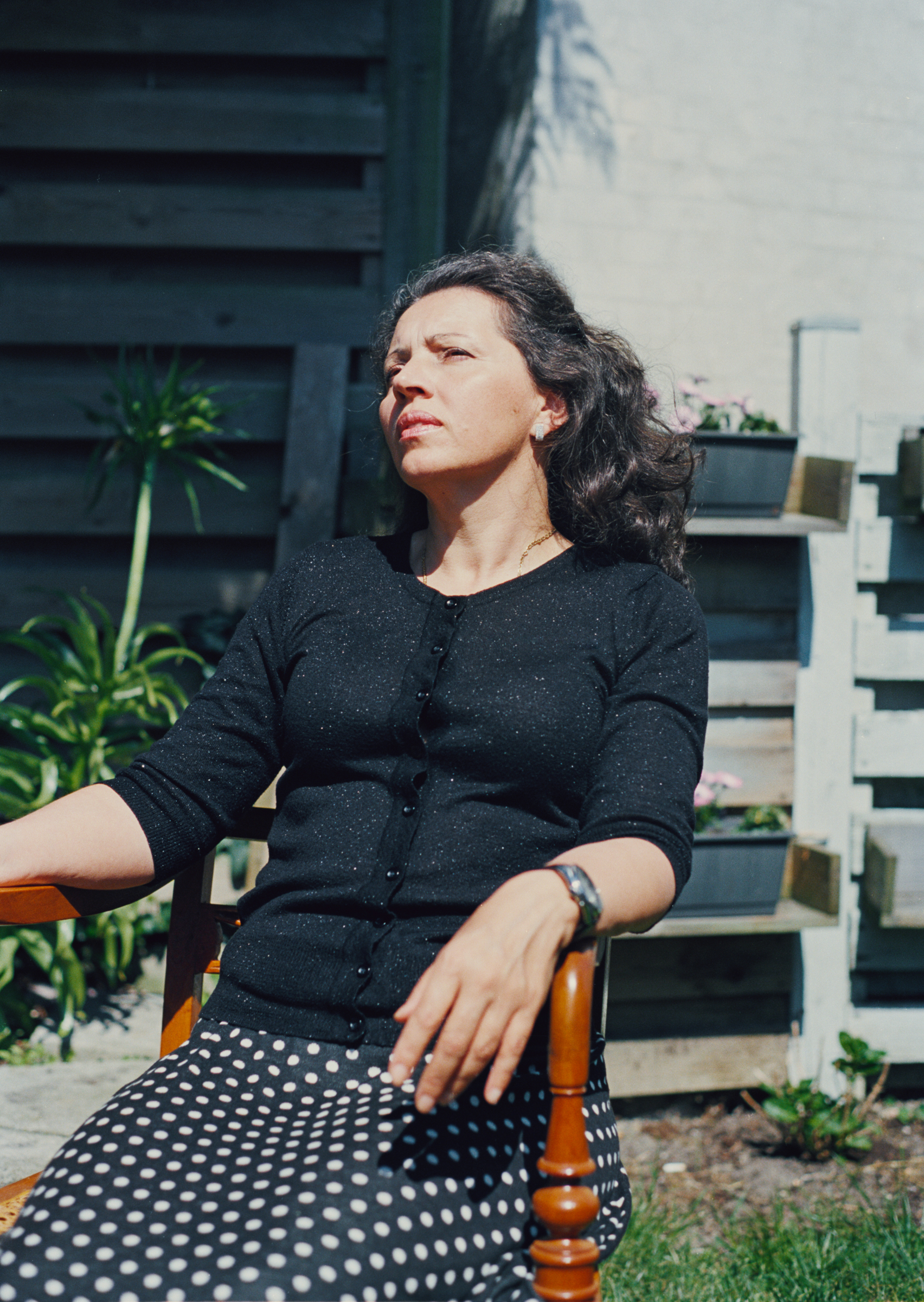 Min mor læner sig tilbage i sin stol og smiler eftertænksomt.
