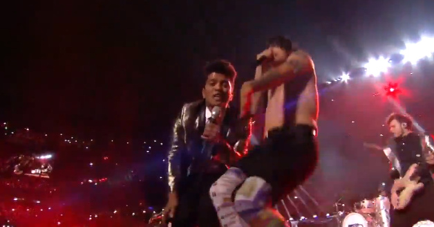 A lot of people probably spent the majority of the pre-game swimming in a sea of condiments, hot-dogs, and disses toward Bruno Mars – with many in the run up to the game saying he wasn’t of the calibre a half time show requires. But with a few flicks of his Stretch-Armstrong lower limbs, these soothsayers were left dumbfounded. Mars demonstrated more flexibility in 10 minutes than Kiedis has in a lifetime of stilted thrusting by standing on a stage and busting out a dance-move that was at least ten times better than anything that Justin Timberlake has done since he changed his noodle hair-cut to a blow-dry.