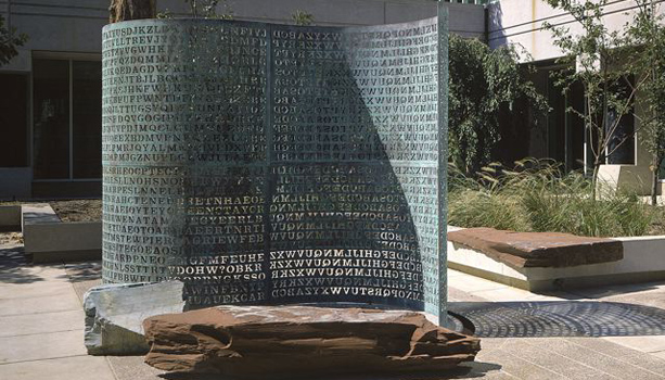 Die 185.000 Euro teure Skulptur Kryptos von dem Washingtoner Künstler Jim Sanborn ist eine mit 865 einzelnen Symbolen (26 Buchstaben des lateinischen Alphabets und das Fragezeichen) überdeckte Nachricht, die öffentlich in der CIA Fine Art Commission Intelligence Art Collection besichtigt werden kann. Das Werk entstand zwar schon 1989, aber noch heute bietet es reichlich Gesprächsstoff und bereitet den Codeknackern ordentlich Kopfzerbrechen.