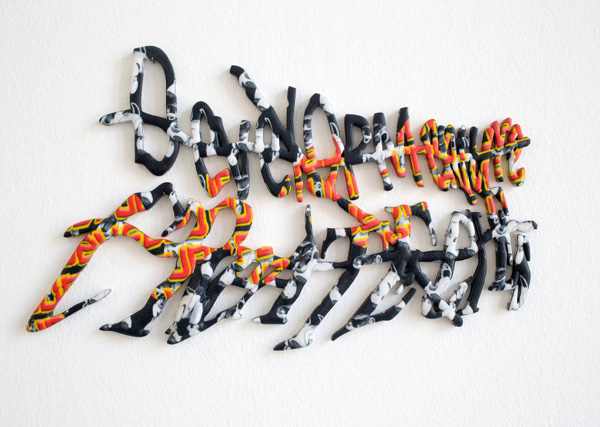 FUBU Career CAPTCHA (Developmenture Creategies) von Naniel Keller (Verwendung genehmigt von Kraupa-Tuskany Zeidler, Berlin und New Galarie New York).Der in Berlin lebende amerikanische Künstler Daniel Keller, der durch das Künstlerkollektiv AIDS 3 D mit Nik Kosmas bekannt wurde, hat eine neue Serie von CAPTCHA-Markierungen angefertigt, die äußerlich stark an Graffitis erinnern. CAPTCHA ist, wie ihr Banausen sicherlich wisst, eigentlich eine Abkürzung für „Completely Automated Public Turing test to tell Computers and Humans Apart". In diesem Fall aber handelt es sich um 3D gedruckte Farbradierungen von imaginären Bildern. Einige diese Bilder entziehen sich hartnäckig jedem Enschlüsselungsversuch. Diese Ausstellung läuft noch bis zum 31 Dezember in der New Galerie in Paris.