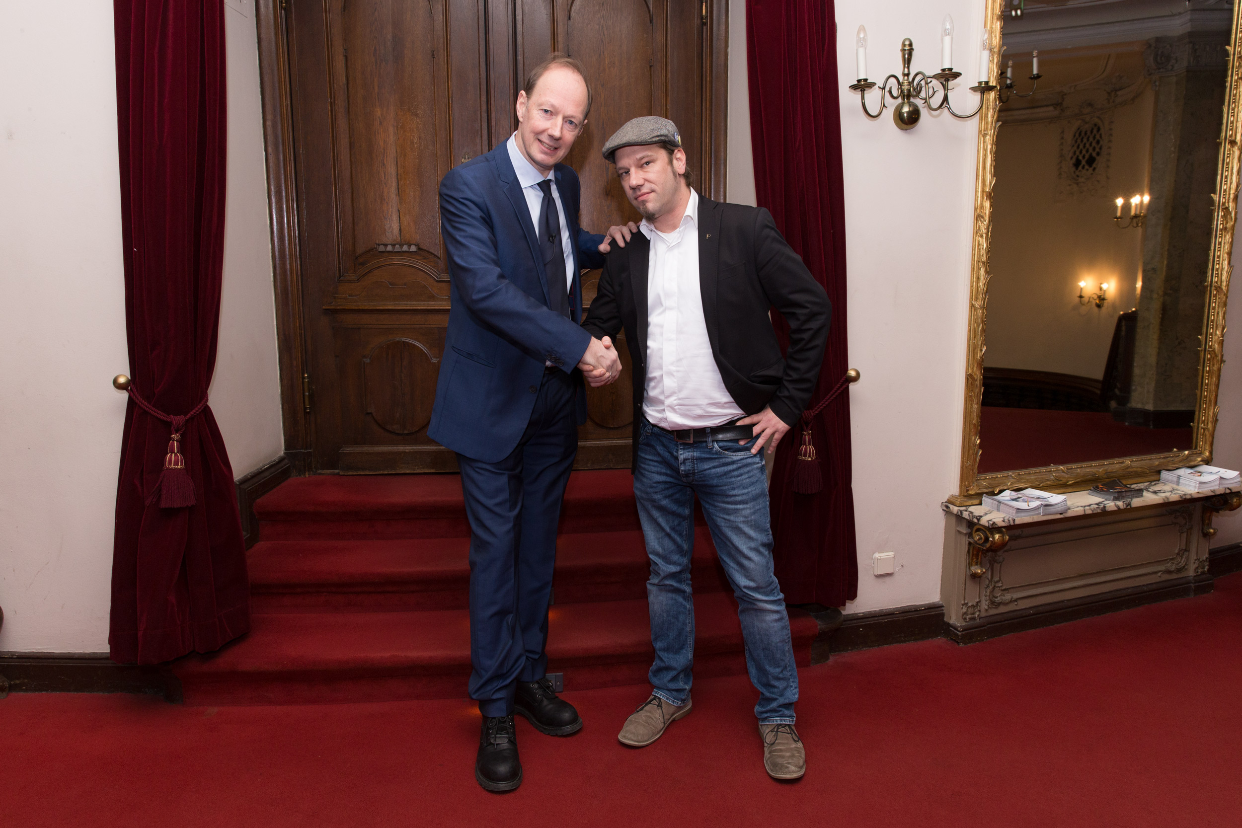 Patrick Schiffer, Bundesvorsitzender der Piraten, und Die-PARTEI-Chef Sonneborn