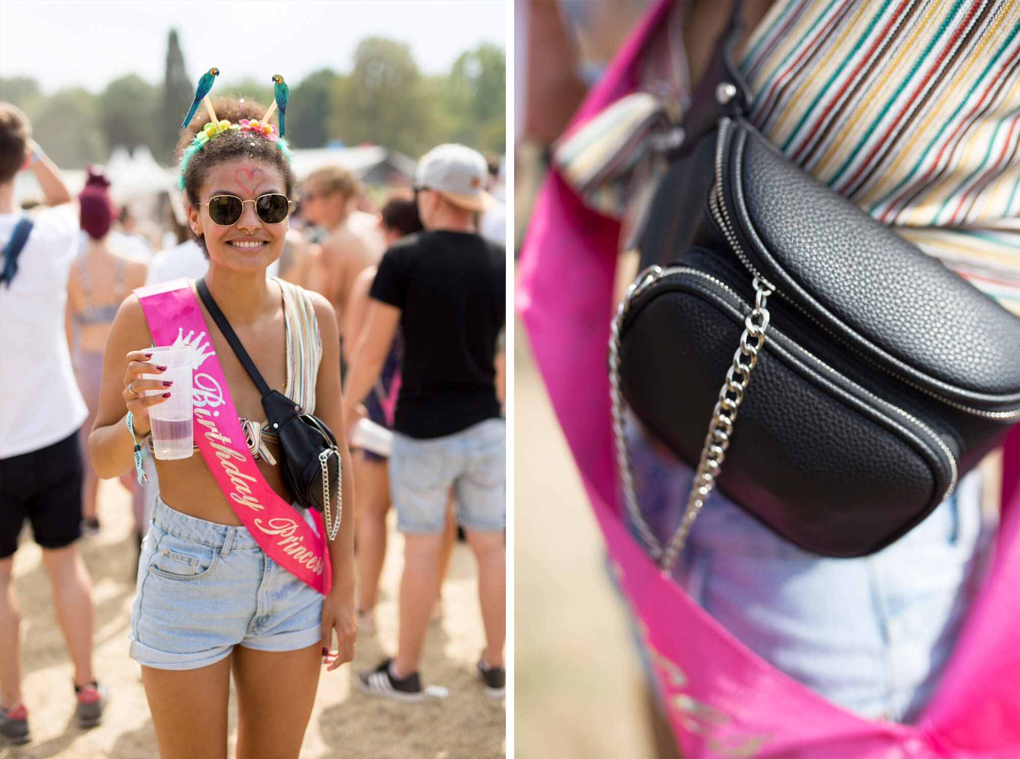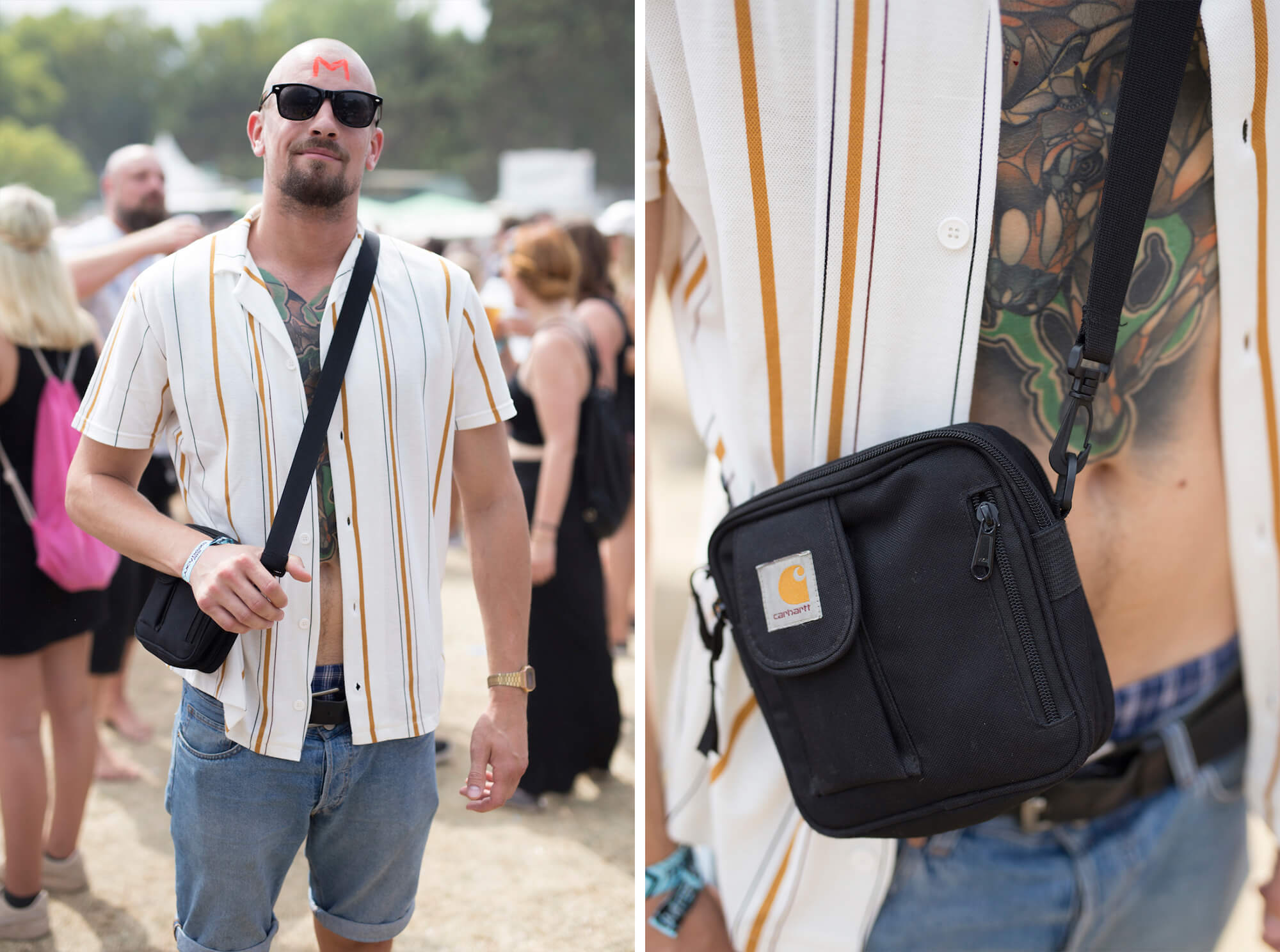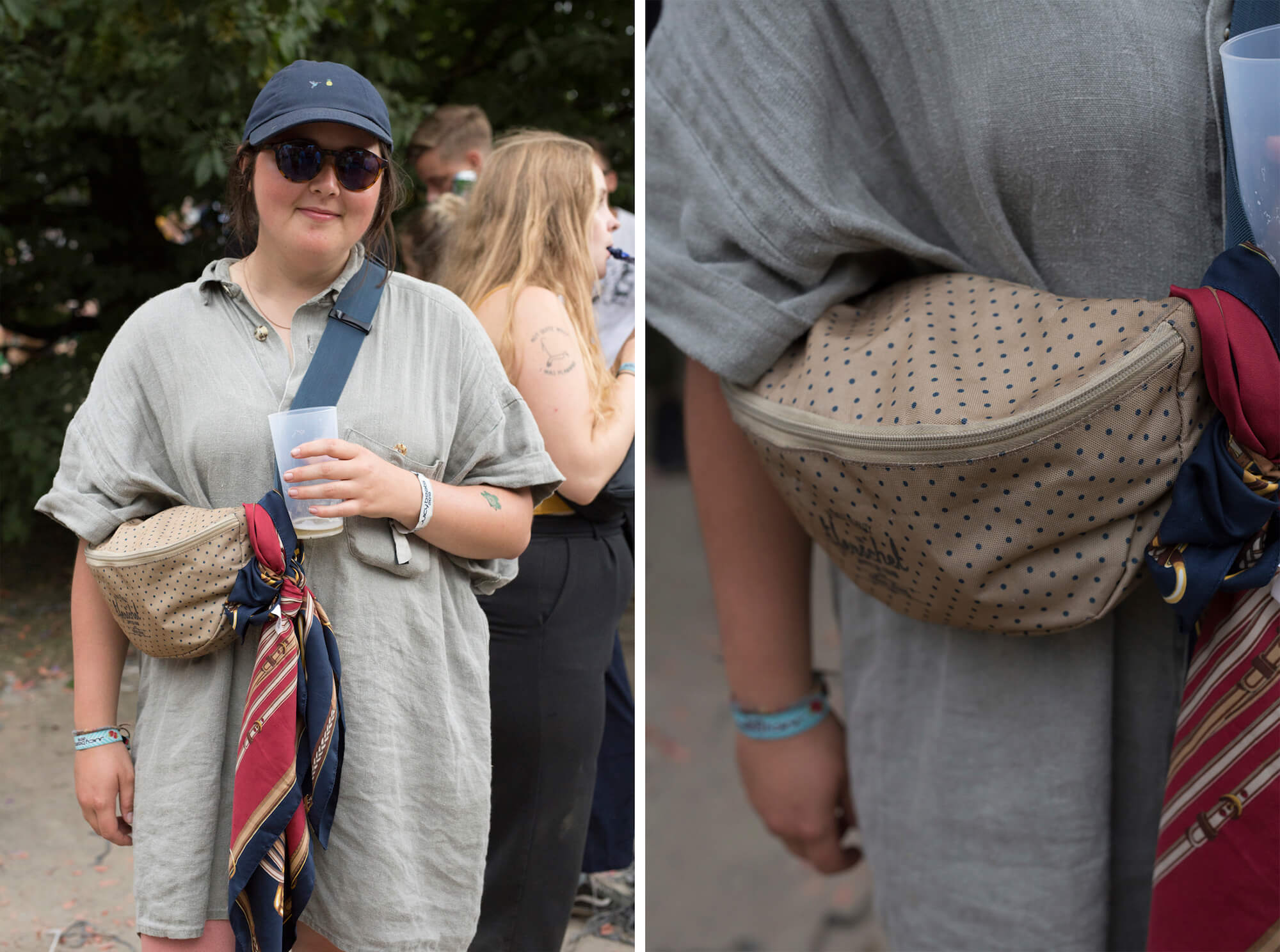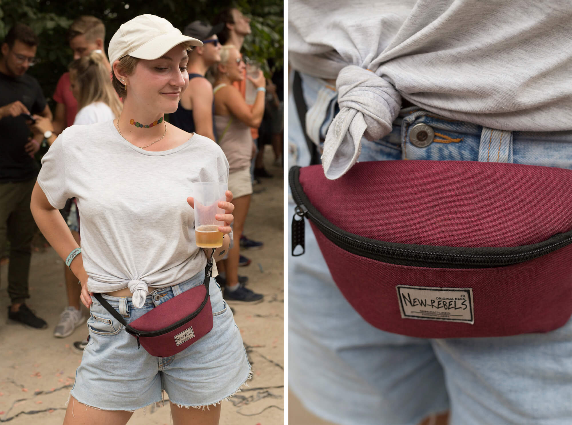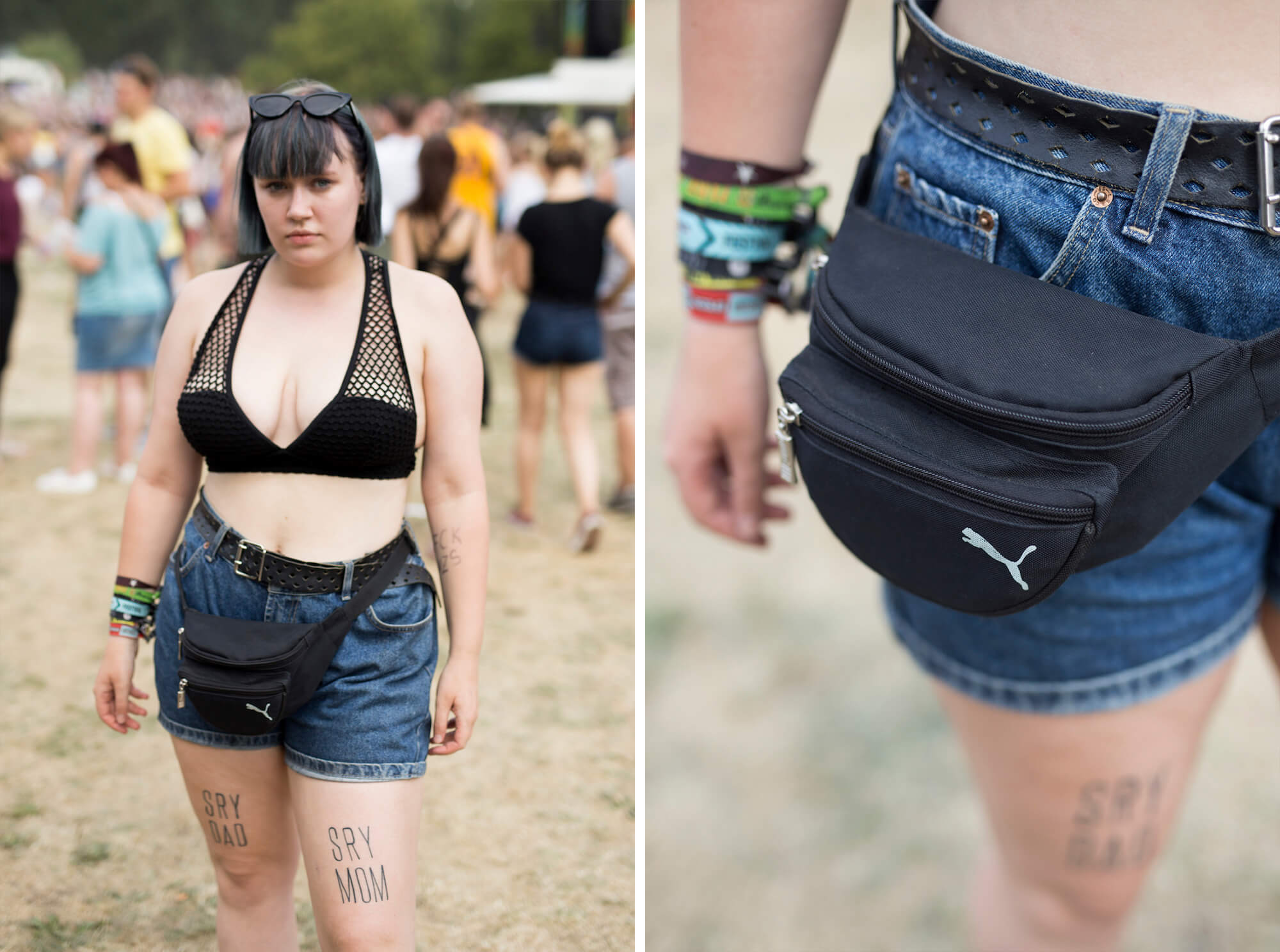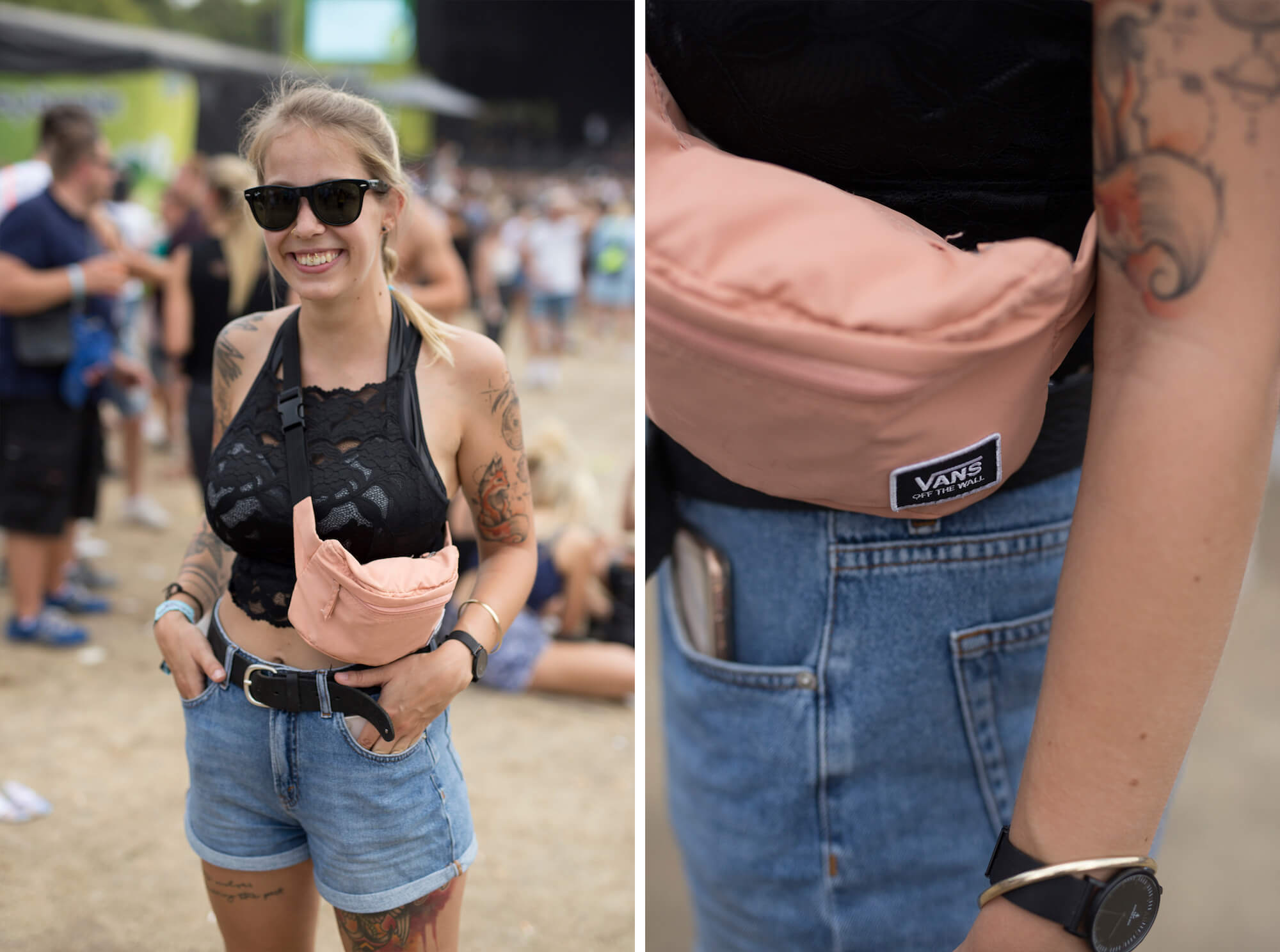 Das Gute an so einem Stadtfestival ist ja, dass man nicht campen muss. Also gehts frisch geduscht und mit den liebsten Klamotten aufs Festival. Immer dabei muss natürlich die Bauchtasche sein. Wo soll man auch sonst Portmonee, Sonnenbrille, Kippen, Taschentücher, Handventilator, Brillenetui, Power Bank und Regenschirm verstauen? In einem Jutebeutel etwa!? Kommt schon, wir waren nicht beim Tag der offenen Tür des örtlichen Baumarkts, sondern beim Juicy Beats! Und genau dort haben wir auch verdammt viele Bauchtaschen gesehen, die unser Fotograf Hakki Topcu kurzerhand fotografiert hat. Die Bilder zeigen, dass das schönste Festival-Accessoire immer noch über der Schulter hängt.