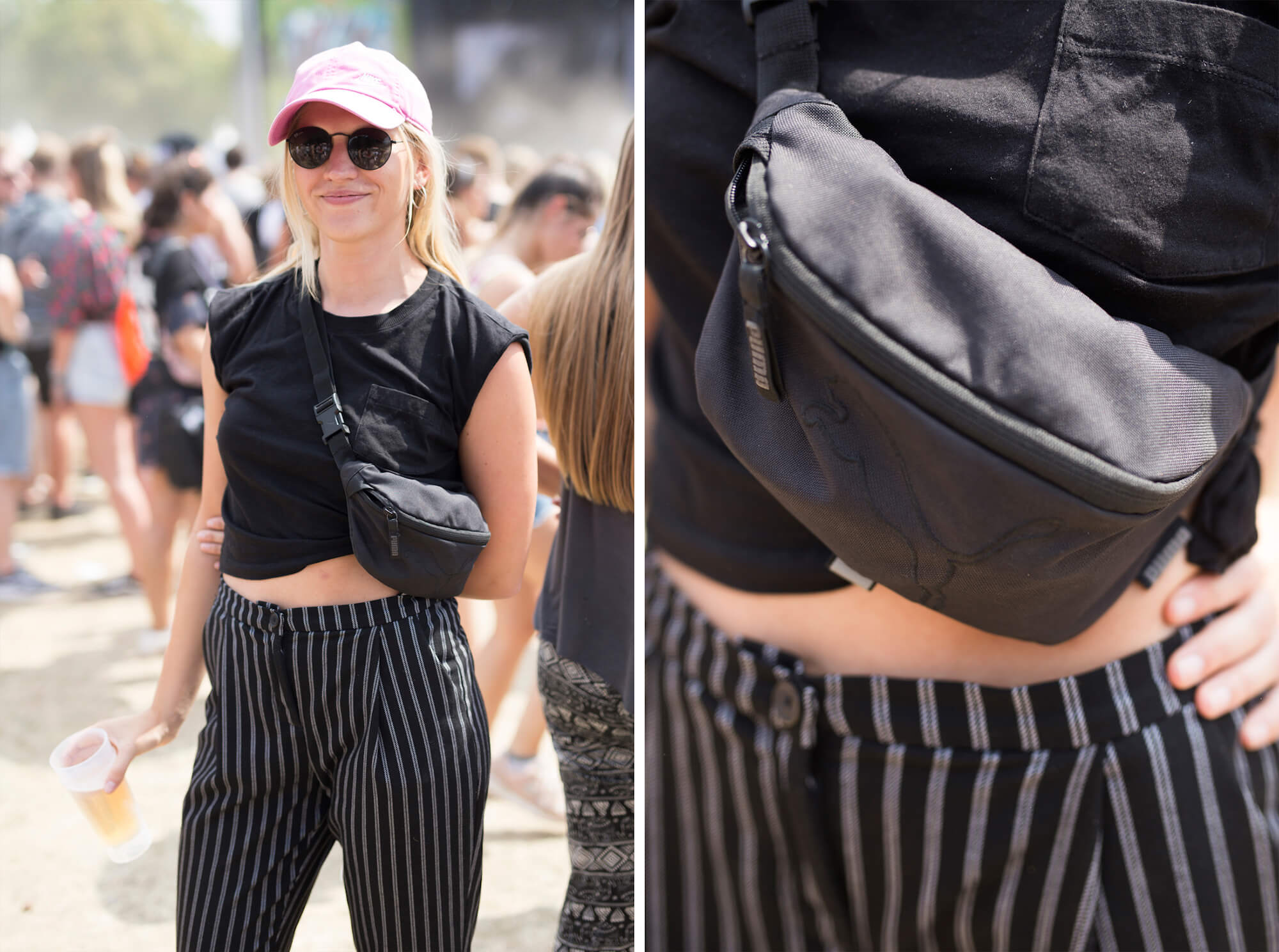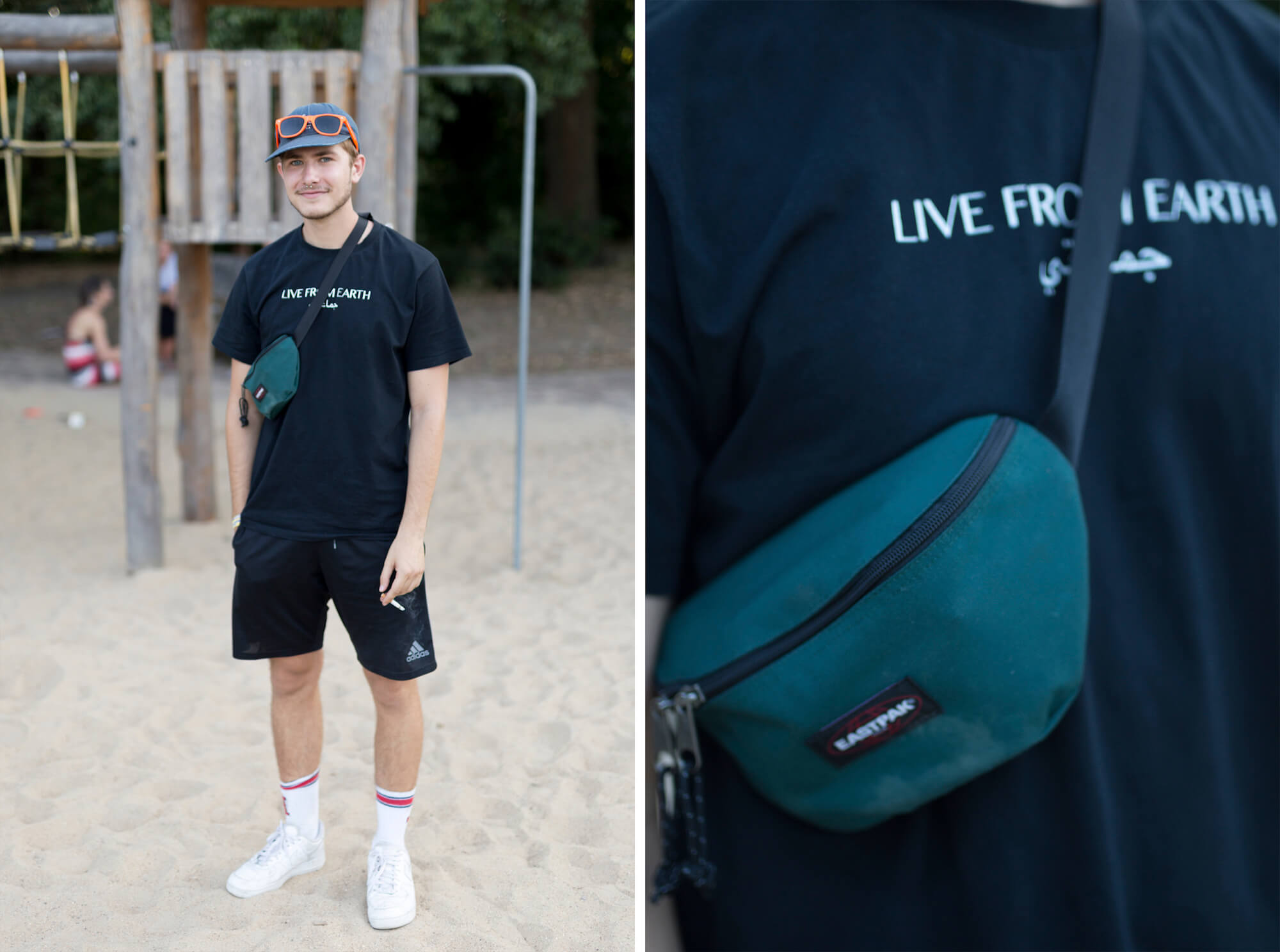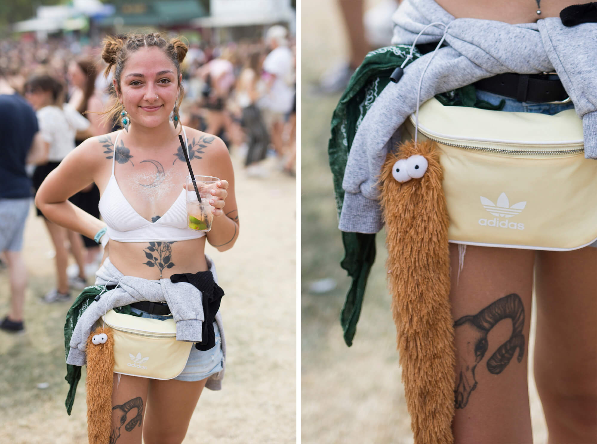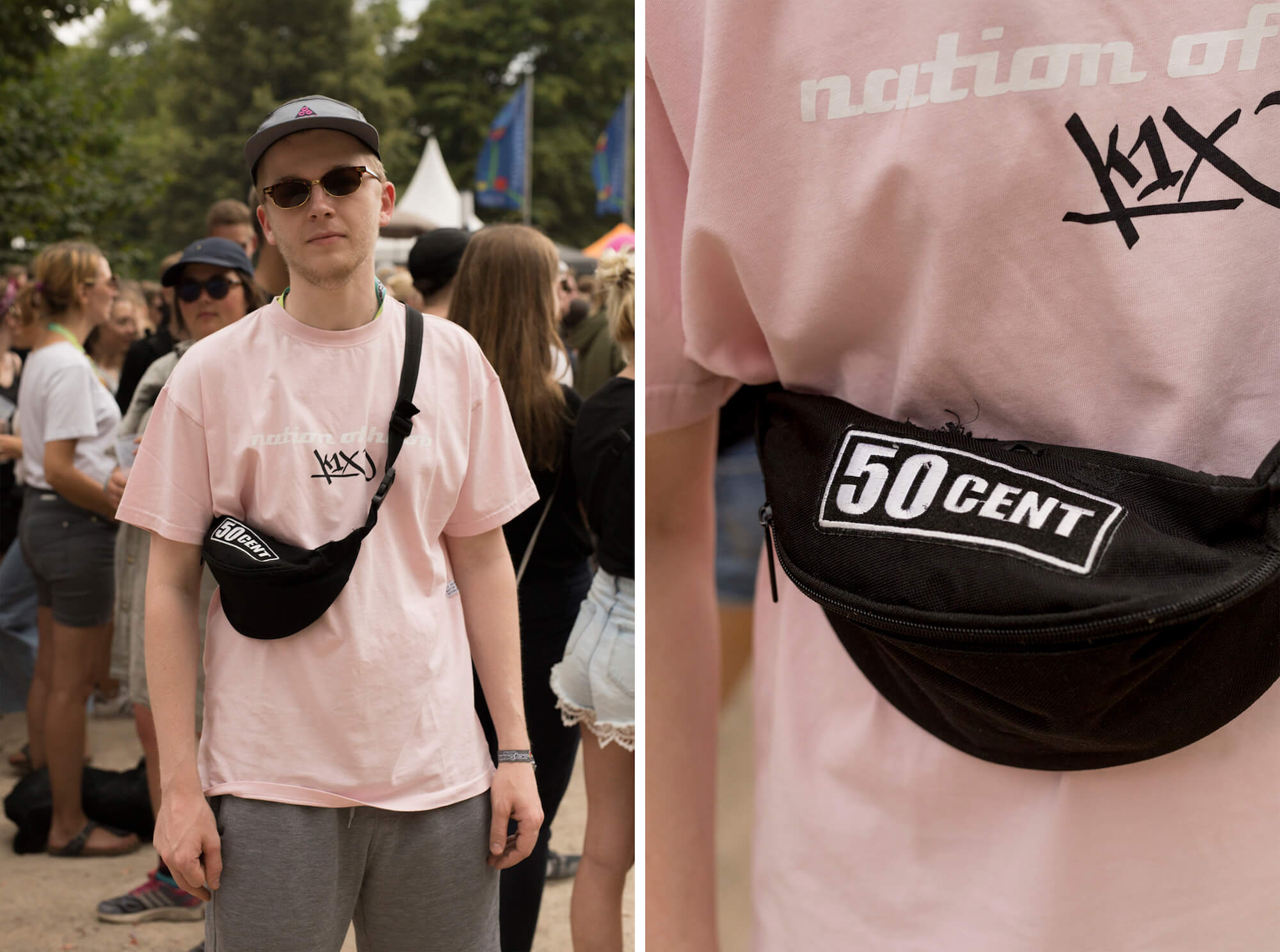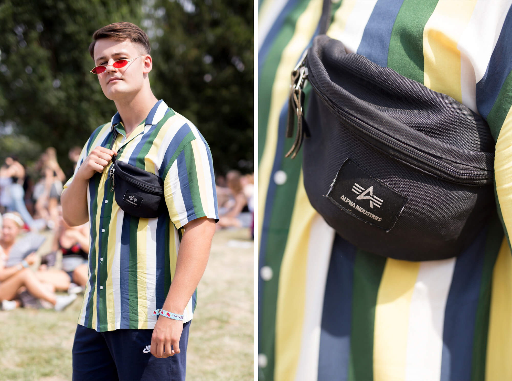 Das Gute an so einem Stadtfestival ist ja, dass man nicht campen muss. Also gehts frisch geduscht und mit den liebsten Klamotten aufs Festival. Immer dabei muss natürlich die Bauchtasche sein. Wo soll man auch sonst Portmonee, Sonnenbrille, Kippen, Taschentücher, Handventilator, Brillenetui, Power Bank und Regenschirm verstauen? In einem Jutebeutel etwa!? Kommt schon, wir waren nicht beim Tag der offenen Tür des örtlichen Baumarkts, sondern beim Juicy Beats! Und genau dort haben wir auch verdammt viele Bauchtaschen gesehen, die unser Fotograf Hakki Topcu kurzerhand fotografiert hat. Die Bilder zeigen, dass das schönste Festival-Accessoire immer noch über der Schulter hängt.