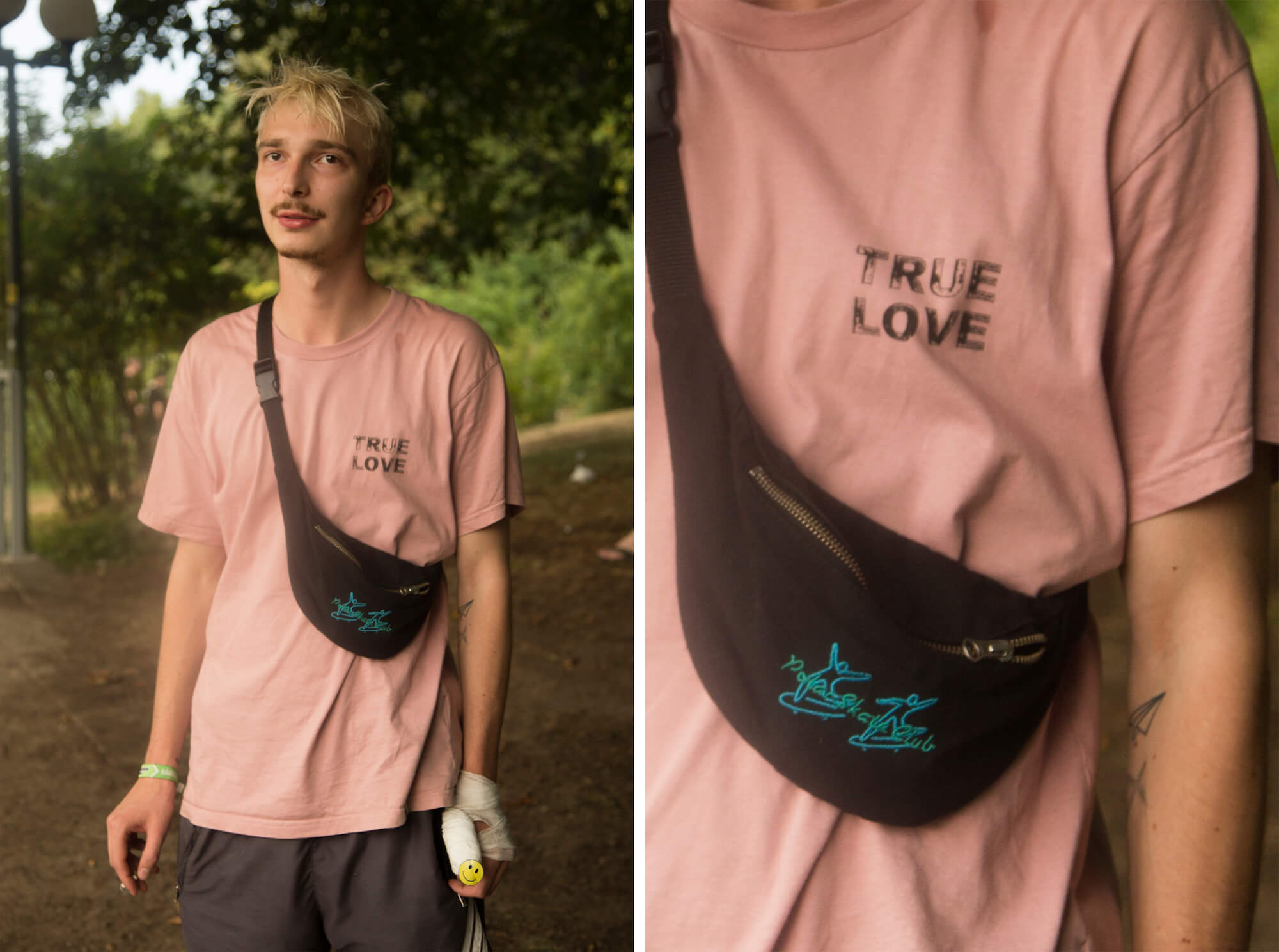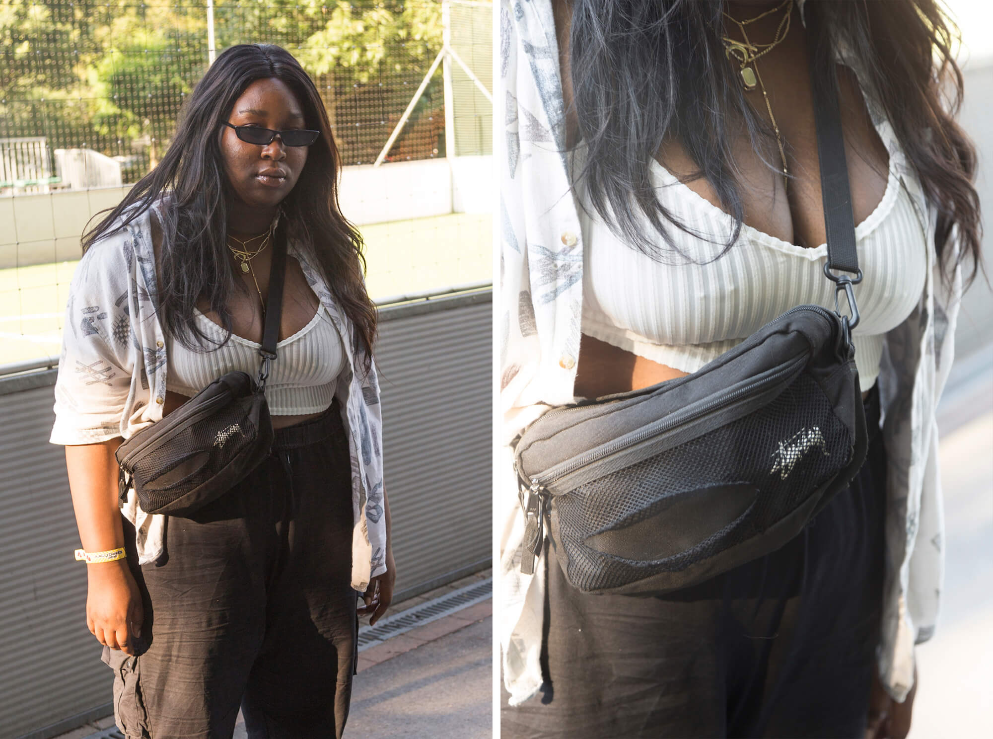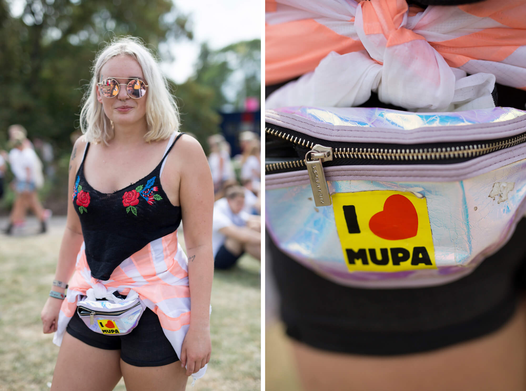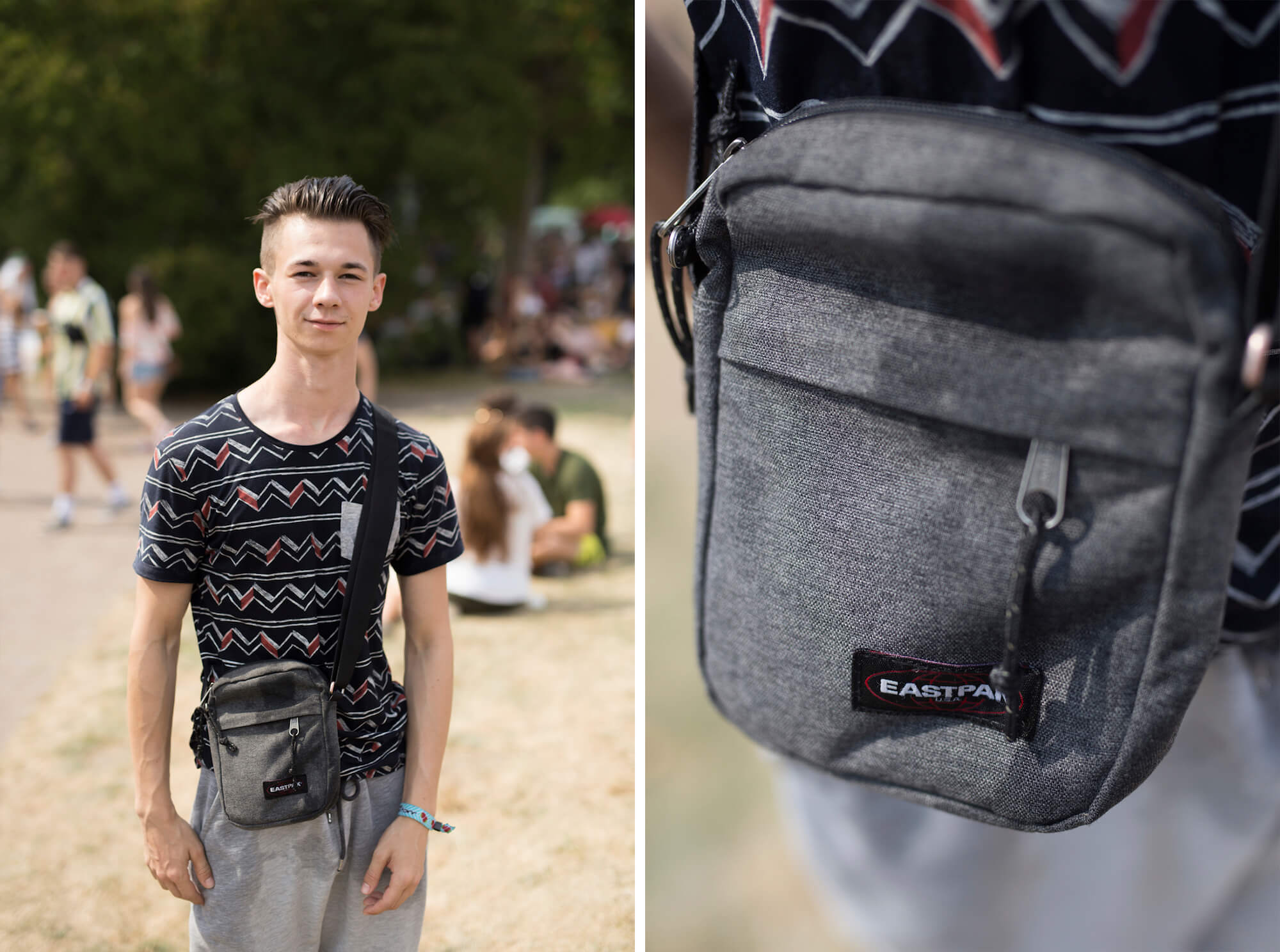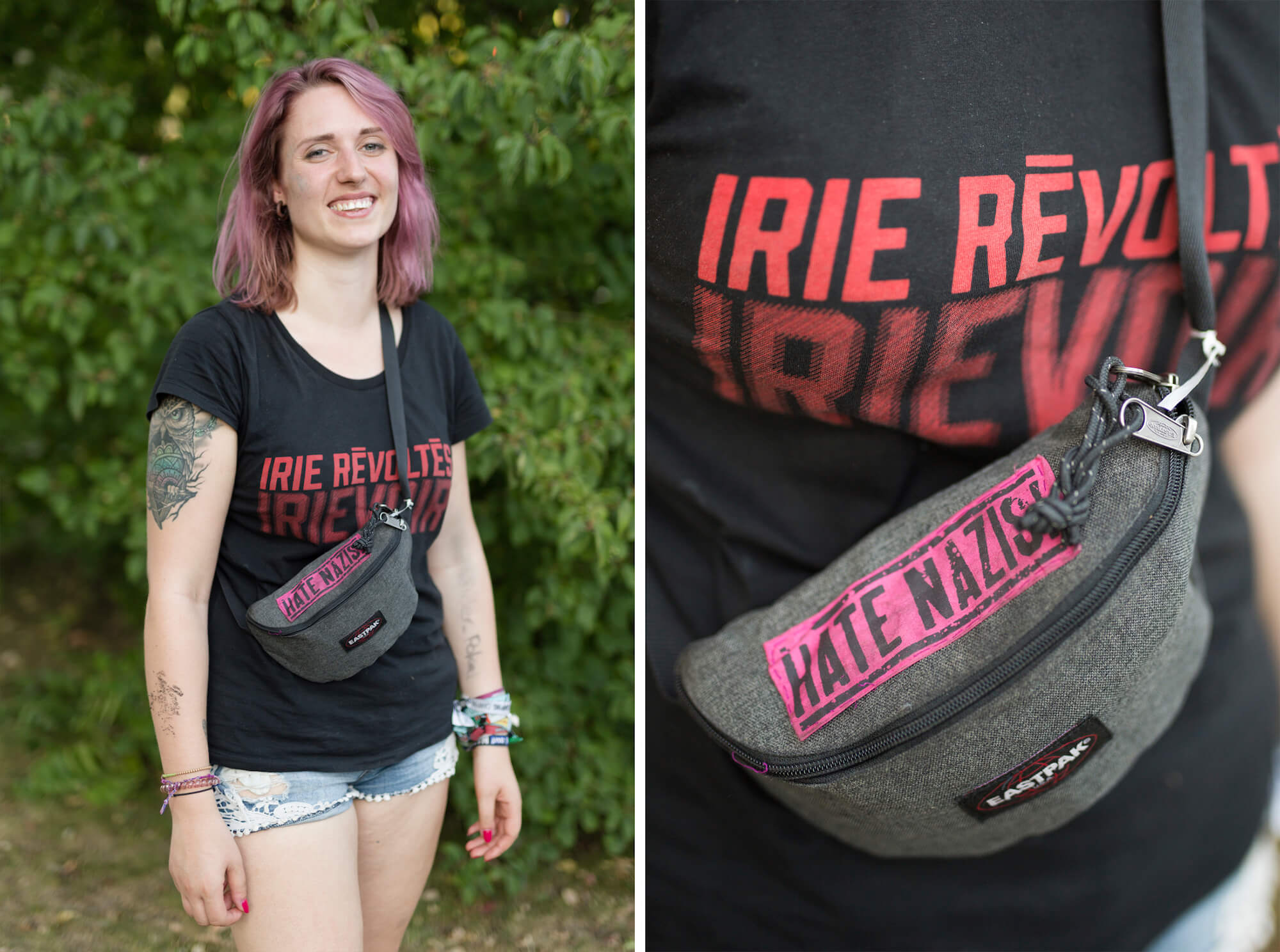 Das Gute an so einem Stadtfestival ist ja, dass man nicht campen muss. Also gehts frisch geduscht und mit den liebsten Klamotten aufs Festival. Immer dabei muss natürlich die Bauchtasche sein. Wo soll man auch sonst Portmonee, Sonnenbrille, Kippen, Taschentücher, Handventilator, Brillenetui, Power Bank und Regenschirm verstauen? In einem Jutebeutel etwa!? Kommt schon, wir waren nicht beim Tag der offenen Tür des örtlichen Baumarkts, sondern beim Juicy Beats! Und genau dort haben wir auch verdammt viele Bauchtaschen gesehen, die unser Fotograf Hakki Topcu kurzerhand fotografiert hat. Die Bilder zeigen, dass das schönste Festival-Accessoire immer noch über der Schulter hängt.