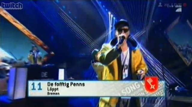 MC Fitti kommt. Ich hasse es, dass in seinem Bart keine Vögel leben. Ich glaube, er ist Cindy aus Marzahn, die sich die Rückenbehaarung von Michael Mittermeier im Gesicht drapiert hat. IST DAS VOKALMATADOR? Aber ich muss zugeben: ich finde das gut mit diese abstrusen 80er Jahre Lichteffekten. So muss die Ejakulation von Magnum aussehen. Bester Auftritt bisher und ich wollte es eigentlich nicht zugeben.