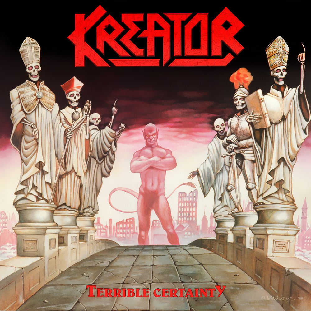 Ja, das Album finde ich auch gut, es war wirklich originell und inspiriert, nur die Umsetzung war nicht so gelungen. Es war einfach der falsche Produzent zu der Zeit. Wir wollten eine Art Pink-Floyd-Version von Kreator machen, und dabei hat uns der Produzent zu sehr freie Hand gelassen—wir hätten etwas mehr Führung benötigt. Das war Tom Morris vom legendären Death-Metal-Studio Morrissound in Florida. Wir hätten lieber Scott Burns nehmen sollen, der im gleichen Studio Bands wie Sepultura, Obituary oder Cannibal Corpse produziert hat. Trotzdem war das Album zu seiner Zeit gut. Außerdem ist das Cover unter dem künstlerischen Aspekt das beste, was wir je hatten. Nur fehlen darauf ein wenig die Kreator-Trademarks. Interessanterweise kam diese experimentelle Ausrichtung der Musik und des Covers damals gar nicht so gut an, heute fragen mich aber viele Leute, warum wir nicht mal wieder sowas wie Renewal oder Endorama machen würden.