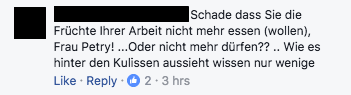 Während die anderen 87 Prozent samt der liberalen Lügenpresse darauf hoffen, dass sich die Partei einfach kurz nach ihrem Einzug in den Bundestag selbst zersetzt, herrscht Aufruhr unter den treuen AfD-Anhängern. Was bedeutet dieser Abgang für die Zukunft der Partei? Muss man sich jetzt wie ein Scheidungskind für ein Lager entscheiden? Wir haben uns durch die Reaktionen gekämpft und konnten feststellen, dass sie alle eines gemein haben: *mimimi*.