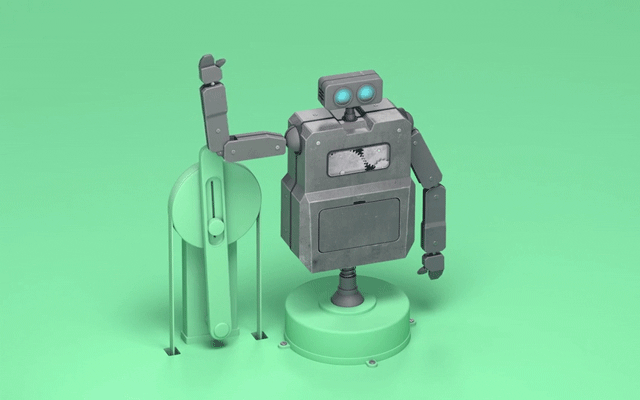 Pastellfarbene Hintergründe und Cinema 4D-Technologie setzen die liebevoll mit Arnold-Software gestalteten Arbeitsabläufe in Szene, die die Roboter unermüdlich bis zum Umfallen ausführen. So bedienen die fleißigen Maschinen Mikrowellen, teilen Essen aus und schleppen—ganz im Stile von Sisyphos—Batterien ein angekipptes Laufband hoch. In diesem Teufelskreis sind sie so lange gefangen, bis das System außer Kontrolle gerät und die Roboter schließlich unter dem schier unerträglichen Leistungsdruck zusammenbrechen. Dem ein oder anderen Betrachter mag dieses Gefühl auf schmerzhafte Weise bekannt vorkommen.