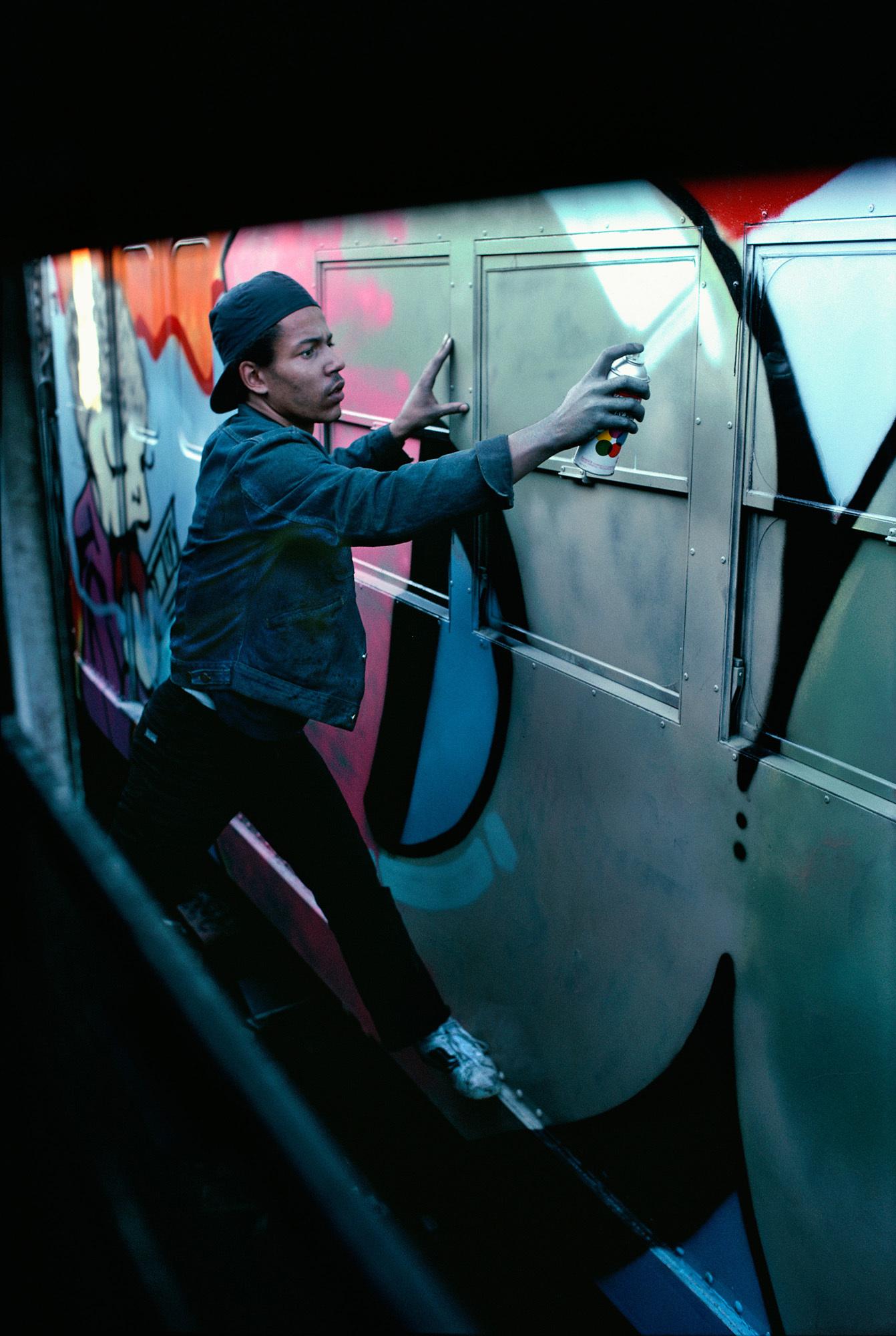 Dondi Painting in New Lots Train Yard, 1980, Copyright MarthaCooper/Courtesy Steven Kasher Gallery, New York