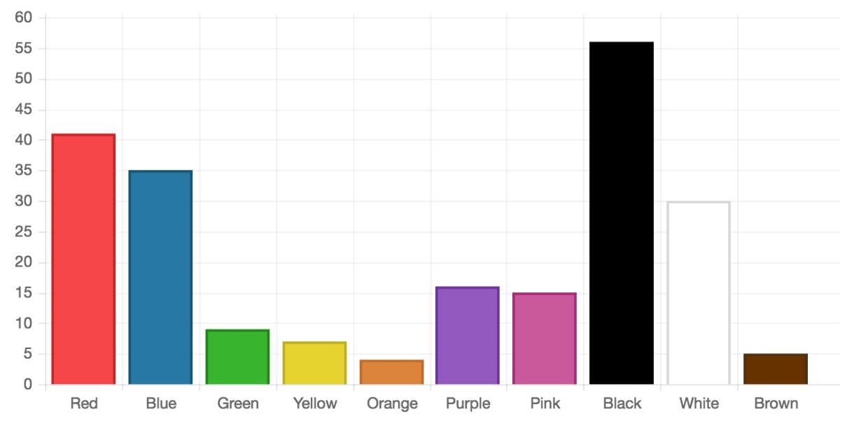 Balkendiagramm zur Frage: Welche Farbe verbindest du am meisten mit Selbstbewusstsein? Graphik: buytshirtsonline.co.uk