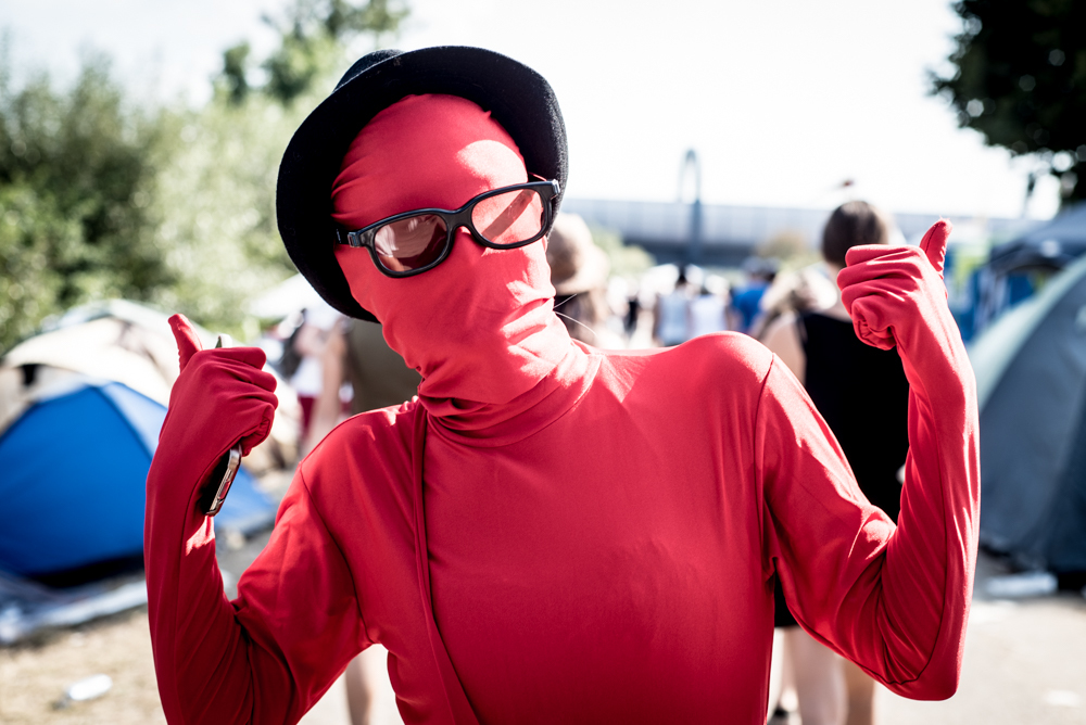 Und es gibt Menschen in Kostümen. Sie sind so etwas wie die Club Kids jedes Festivals, nur ohne Club und oft auch keine Kids mehr. Manche verkleiden sich, um jemand anders zu werden und andere, um sie selbst zu sein—und alle sehen dabei ziemlich besonders aus. Wir haben für euch ein paar der schönsten und verstörendsten Kostüm-Menschen fotografiert und hoffen, dass wir nächstes Mal auch den Typen im Bananen-Kostüm vor die Kamera bekommen.