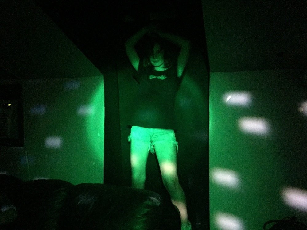 Stunde 6, 3 Uhr: DJ Stingray aus Detroit ist heute da und die düstere Tanzfläche kocht. Ich reiße mir mein Shirt vom Leib, denn dieses Wochenende werde ich zu meinem eigenen Musikfestival – warum dann nicht auch gleich einen auf EDM machen?