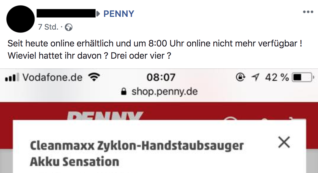 Aber auch deutsche Disziplin zeigt sich im Discounter: Wenn sie sich um sechs Uhr den Wecker stellen, um pünktlich um acht vor den Schiebetüren der nächstgelegenen Filiale zu stehen. Auf der Facebook-Seite von Penny schrieb eine Frau, der Handstaubsauger, den sie habe kaufen wollen, sei bereits am frühen Morgen ausverkauft gewesen. Erst im April überlud die Aldi-Community die Beitrags-Seite des Discounters mit flammenden Wut-Kommentaren, weil diverse Filialen (ja, viele Kundinnen und Kunden haben mehrere besucht) nicht genügend Exemplare eines Gasgrills erhalten hatten.