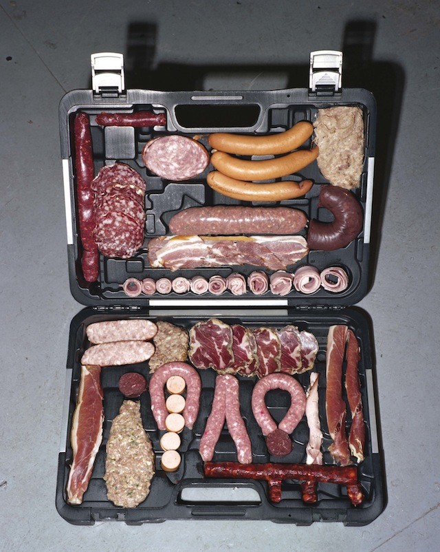 Thomas Mailaender ist ein in Paris lebender Multimedia-Künstler, der damit angefangen hat, Dokumentationen zu machen. Seine letzten Kreationen spielen mit dem Konzept der Typologie und Darstellung und geben „zufällig groteske Momente“ wieder. Diese Auswahl an Bildern beinhaltet seltsame mit Nahrungsmitteln zusammenhängende Szenen wie einen Wurstwerkzeugkasten und eine Toilette, die mit Pommes gefüllt ist.