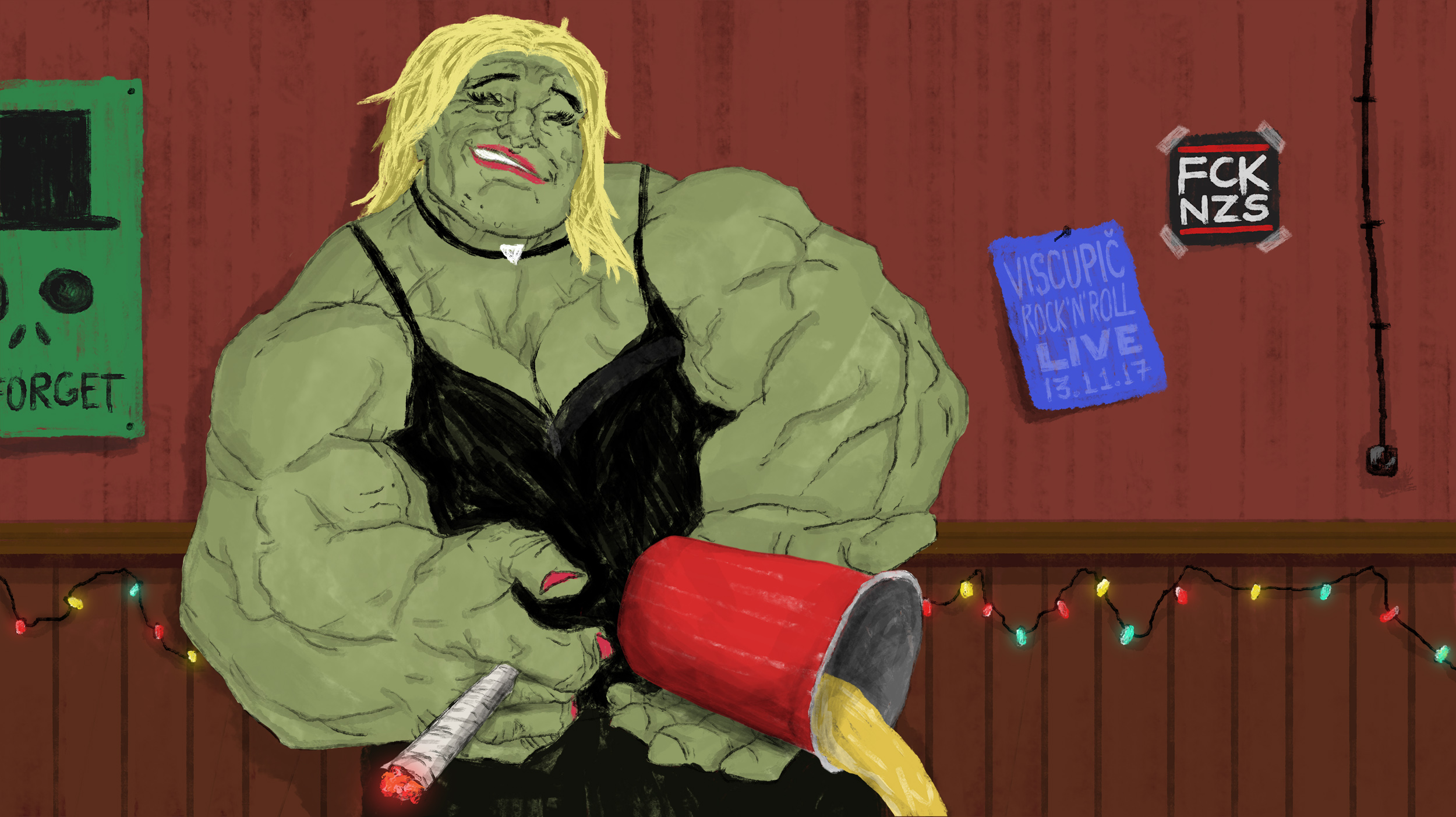 Joint und Schnaps, kein Problem für Hulk – für Dominika schon | Illustration: Mariel Bulaong