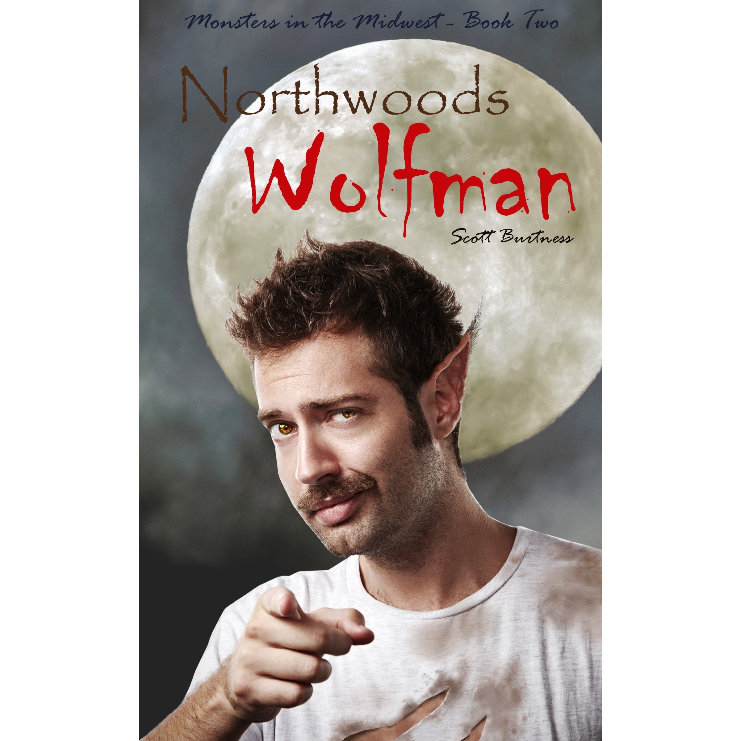 In der gleichen Nacht, in der ich den Song entdeckte, schickte mir ein Freund einen Link zu dem im Eigenverlag erschienen Roman Northoowds Wolfman von Scott Burtness. Es ist das zweite Buch der Reihe Monsters in the Midwest und handelt von einem Monsterjäger namens Dallas. Die Kindle-Version kostet schlappe 2,99 Euro. Auf dem Cover bin ich zu sehen, allerdings mit spitzen Ohren und einem zerrissenen T-Shirt.