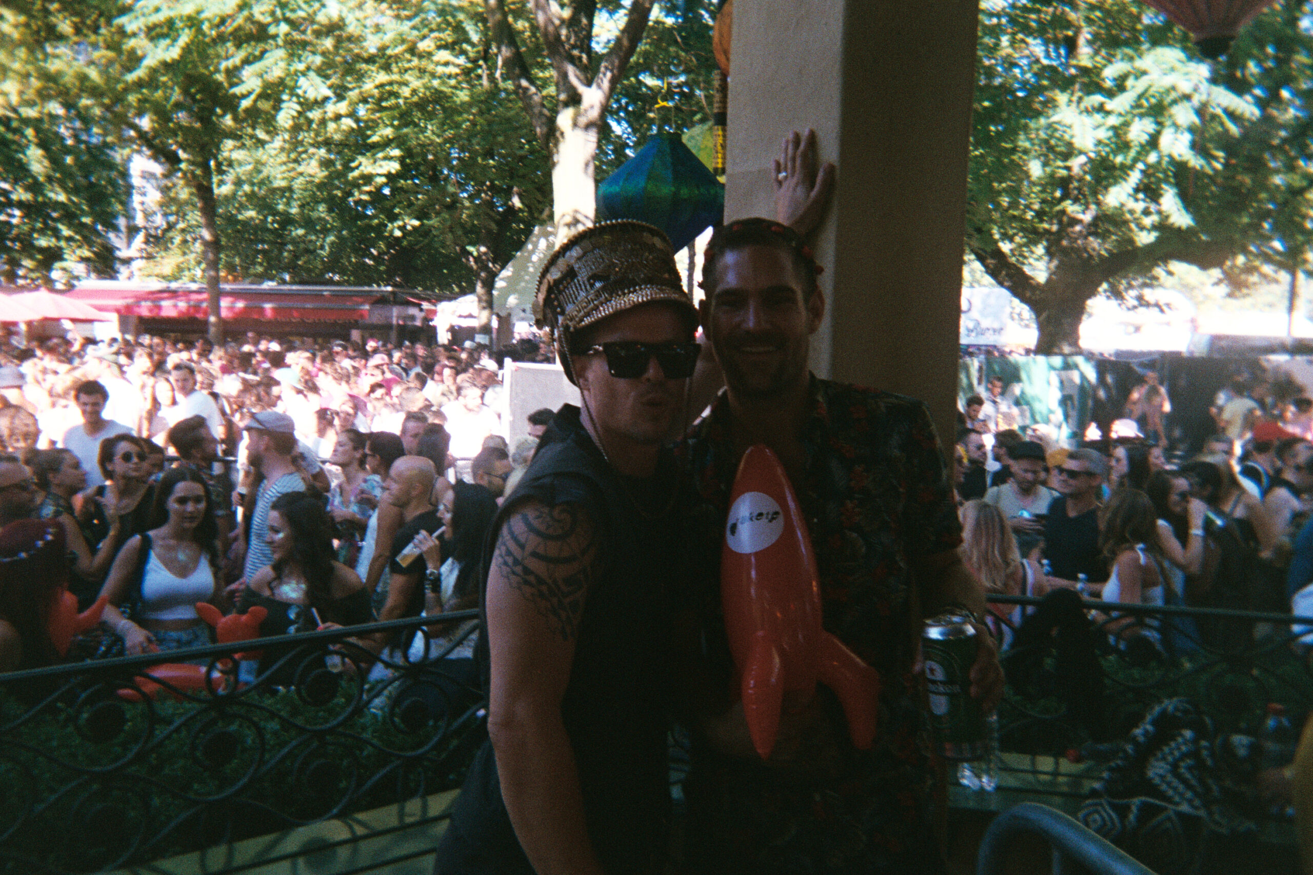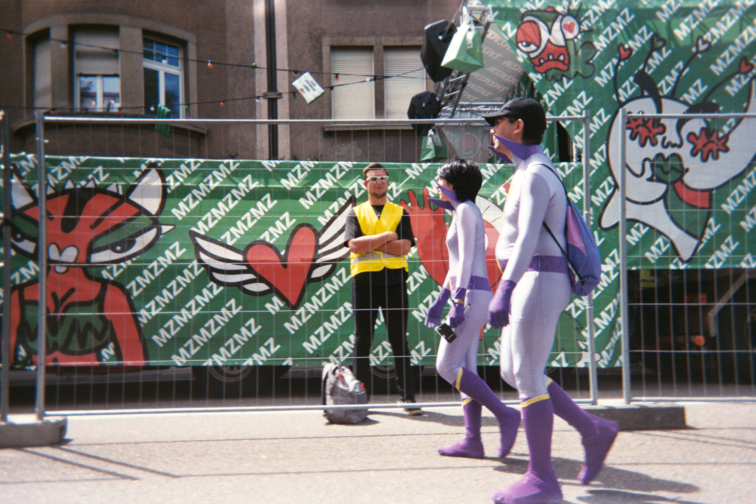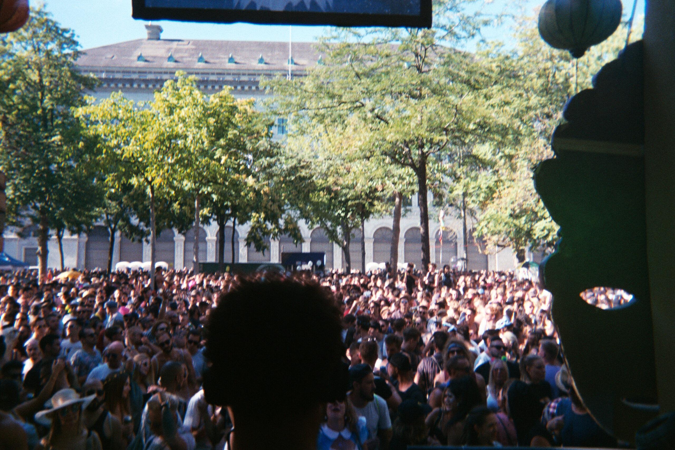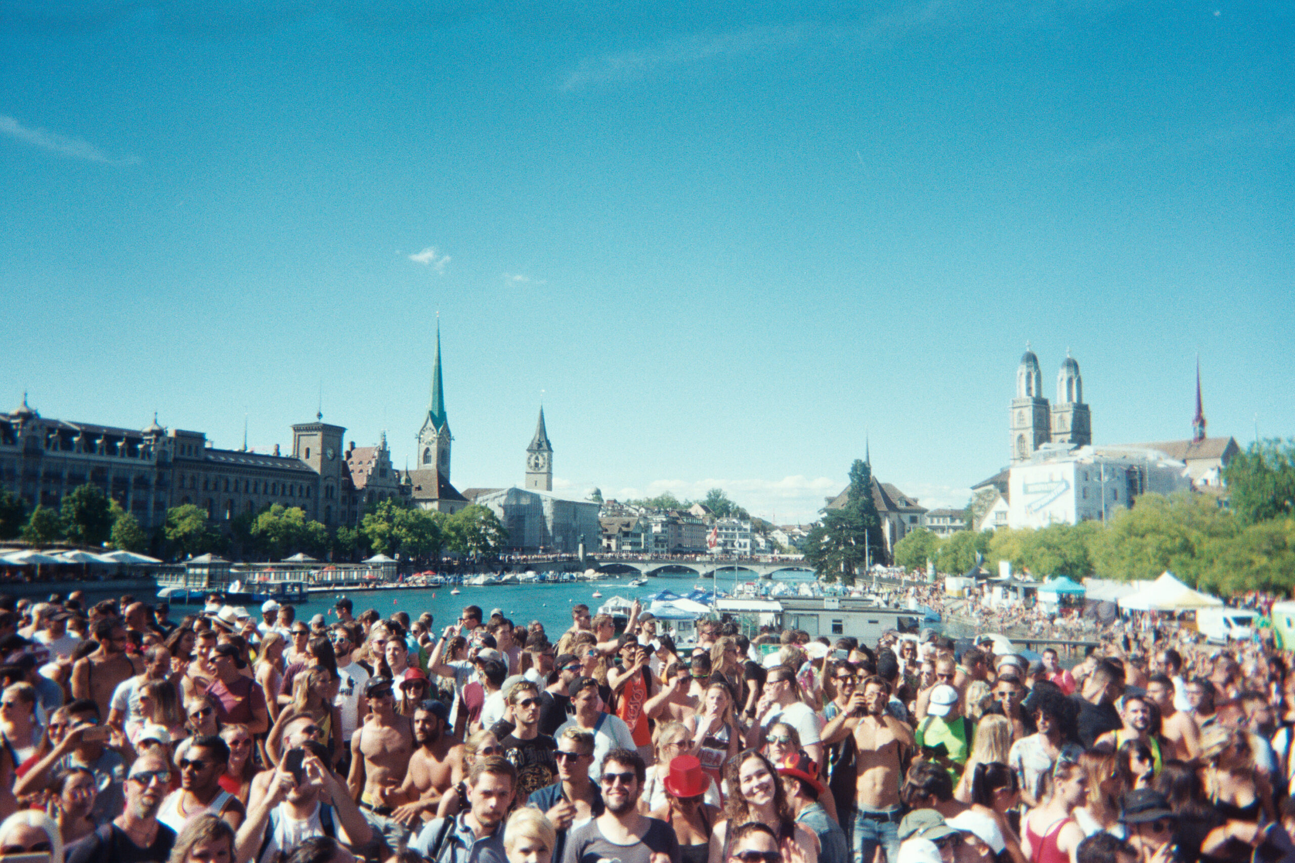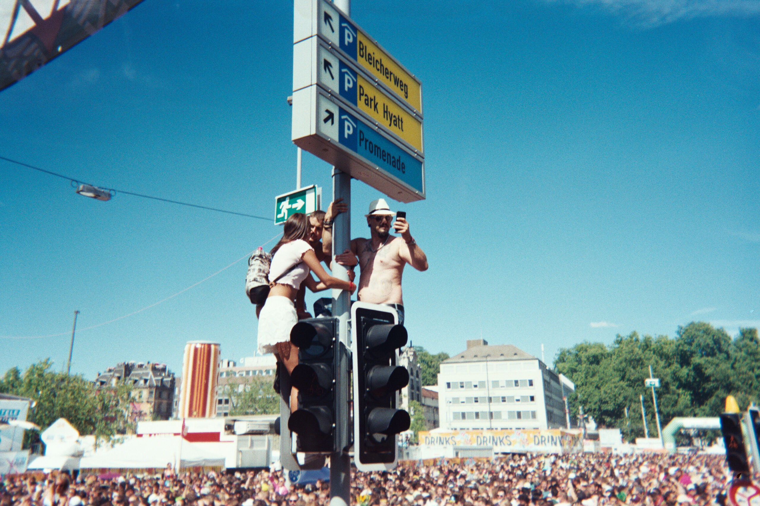 Animal Trainer und die Street Parade sind wie Bonnie und Clyde, wie Alkohol und der Kater am Tag danach, wie die Technoszene und die Sync-Button-Diskussion – unzertrennlich. Dieses Jahr machte das Zürcher DJ-Duo und die Parade ihre geheime Romanze, über die in der Limmatstadt jahrelang getuschelt wurde, sogar publik: Animal Trainer lieferten die offizielle Hymne zur 26. Ausgabe der Techno-Demo, legten auf ihrem Love Mobile auf und hatten am Bürkliplatz ihre Rakete-Stage. Dass der Paraden-Samstag ein grosser Tag für Adrian und Samy werden würde, war also vorprogrammiert. Deshalb haben wir ihnen zwei Wegwerfkameras mitgegeben. Sie haben brav alles in einem Foto-Tagebuch dokumentiert und die Fotos kommentiert: