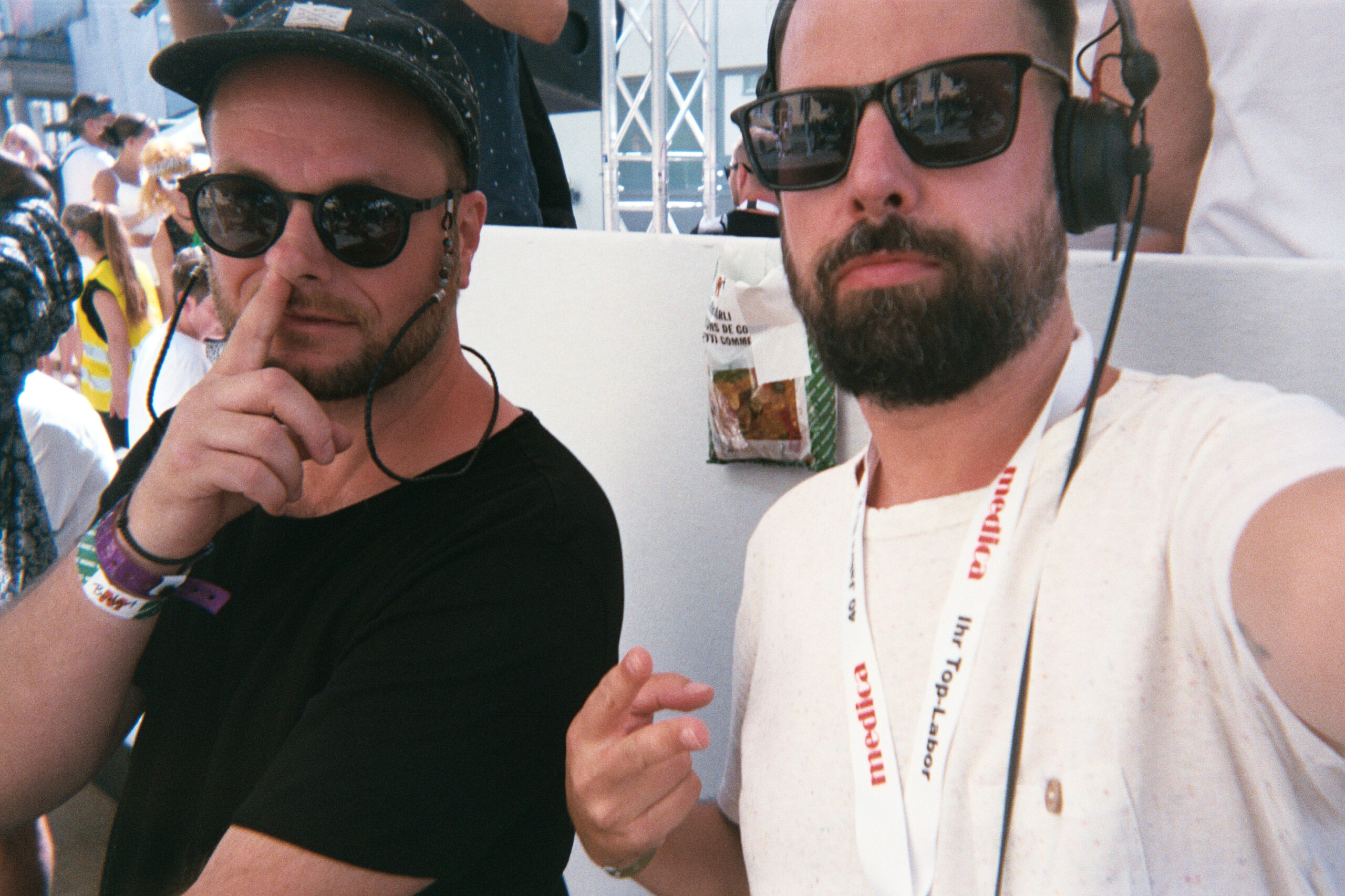 Hier schön zu erkennen: Simon von Andhim und die starke Schulter seines DJ-Kollegen Tobi. Sie haben auf unserer Stage ein Knaller-Set hingelegt.