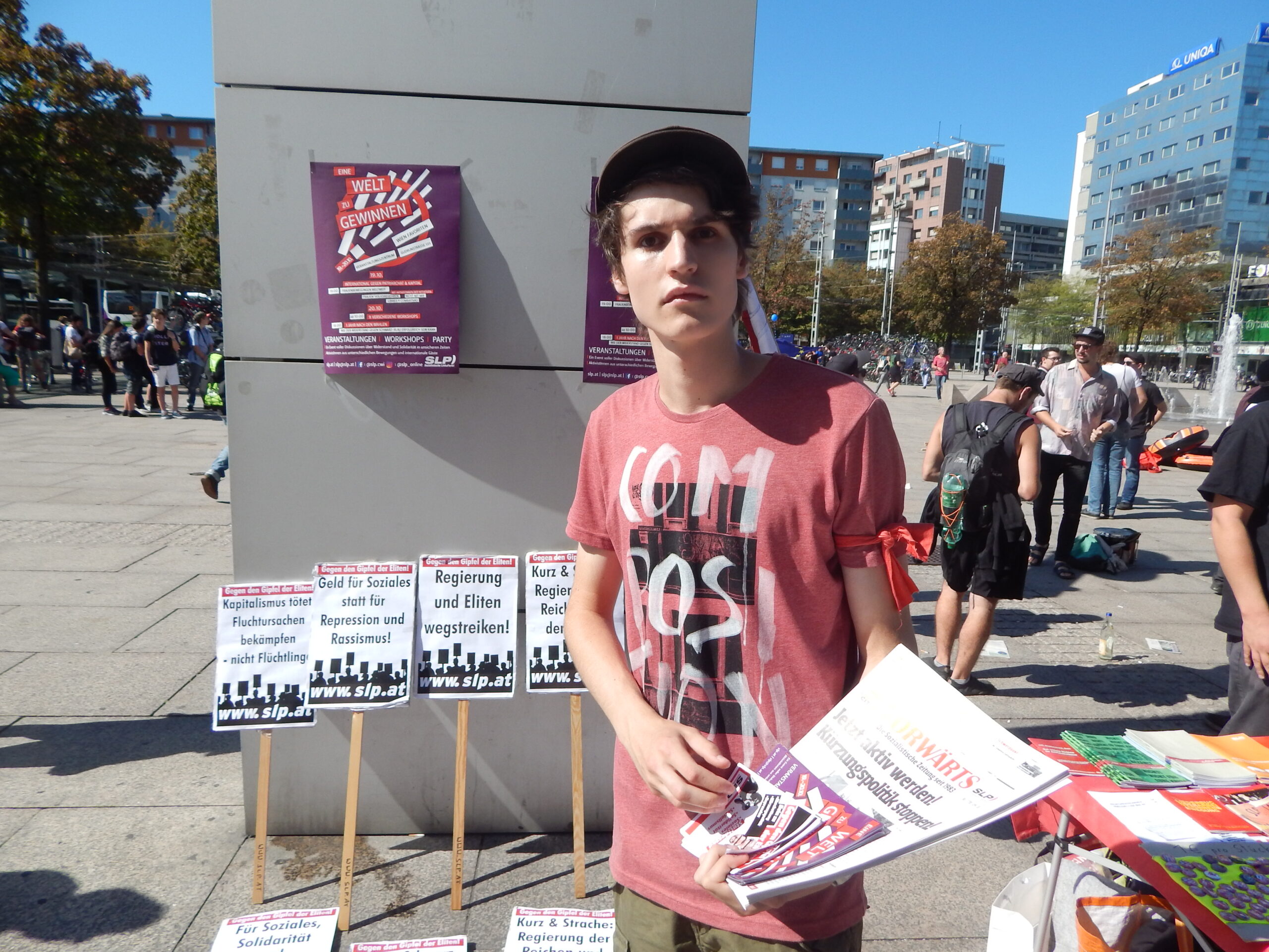 “Ich bin heute gegen die EU der Banken und Konzerne auf der Straße. Ich glaube, dass es notwendig ist, die Politik von Kurz, Strache und ihren europäischen Freunden zu bekämpfen. Die Demo sollte ein Ausgangspunkt für Proteste und Streiks gegen den Zwölfstundentag und die Zerschlagung des Gesundheitssystems sein.”