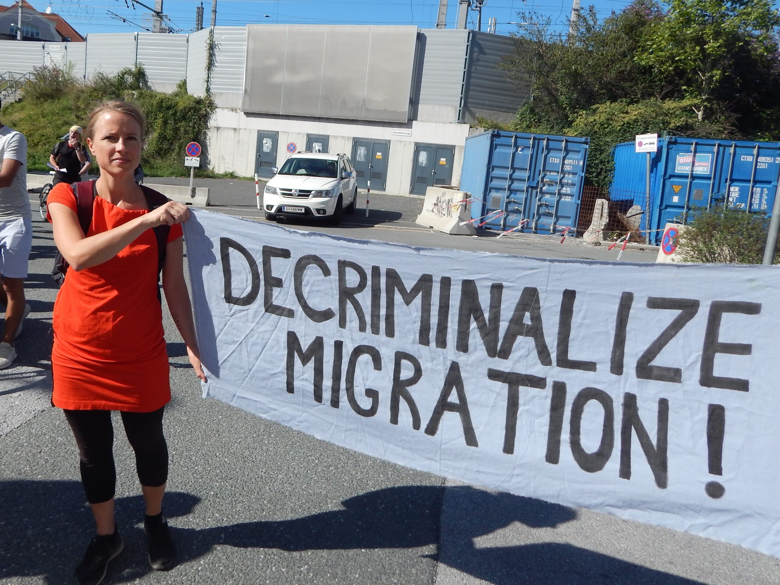 “Wir demonstrieren gegen die Abschottung und die Abschiebepolitik der EU. Wir hätten uns zwar gewünscht, dass noch mehr Leute kommen. Aber für einen Termin unter der Woche und die Uhrzeit ist es eigentlich ziemlich gut.”