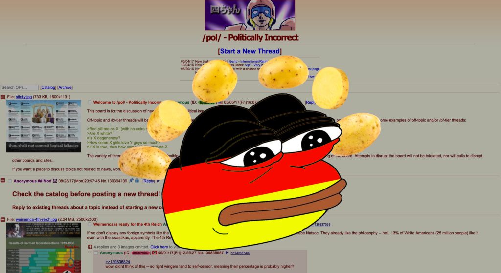 Im letzten halben Jahr wurden die Nutzer vom Imageboard 4chan für so einiges verantwortlich gemacht: Den Wahlerfolg von Donald Trump, die gewalttätigen Naziaufmärsche in Charlottesville und die Verwandlung des harmlosem Comic-Frosches Pepe zur Nazi-Ikone. An allen diesen Ereignissen sollten die Nutzer des Unterforums /pol/ – dessen Name als Kurzform für “politically incorrect” steht – maßgeblich beteiligt gewesen sein. Aber wer sind eigentlich die Menschen, die im anonymen Forum täglich tausende rassistische Memes teilen und zu Online-Attacken auf Andersdenkende aufrufen?
