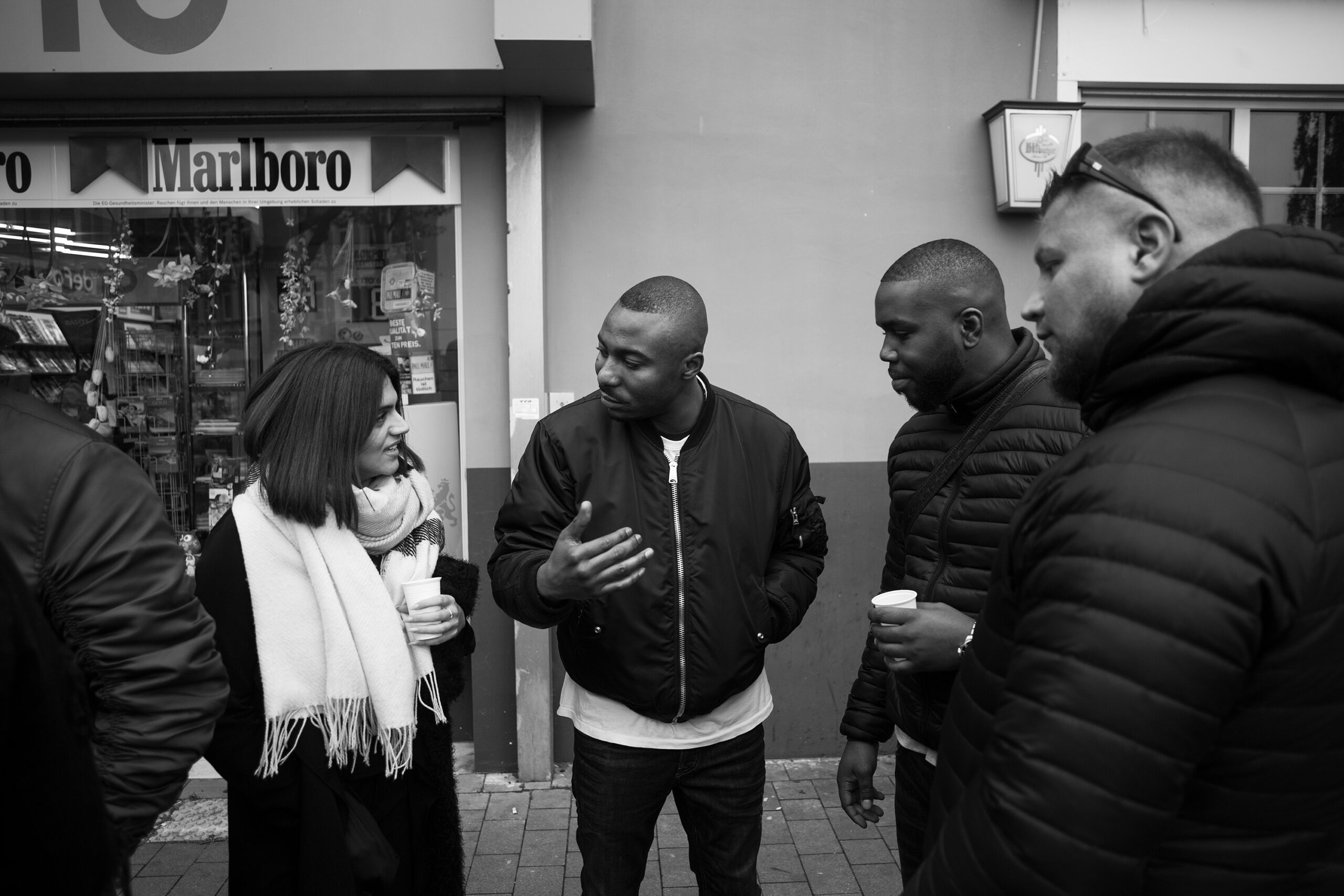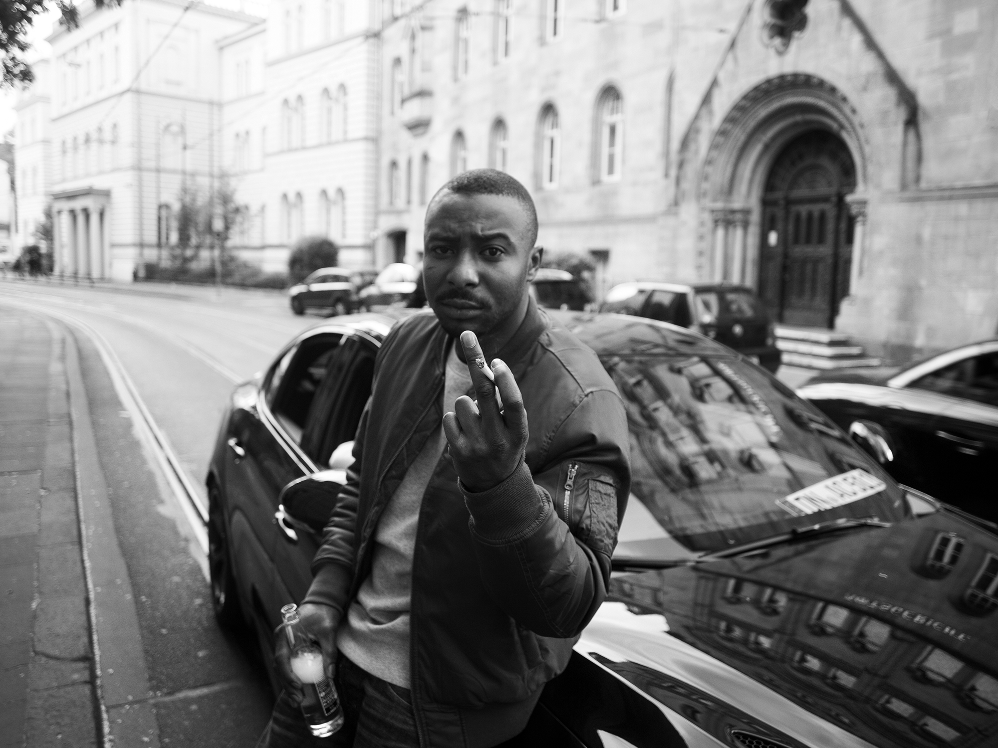 Die meiste Zeit ist er von Freunden umgeben, die Fremden gegenüber skeptisch sind. Wenn sie sprechen, nutzen sie Synonyme, Zeichensprache und die im Bonner-Raum unter jungen Leuten verbreitete Bi-Sprache, bei der vor Vokalen ein “bi” eingeschoben wird, um das Gesprochene für andere schwerer verständlich zu machen. Wenn sie von “Drobigen” sprechen, meinen sie Drogen und wenn jemand “Bubillen” ruft, warnt er seine Freunde vor der Polizei. Erst nach Wochen kommt es zu einem Moment, in dem G-Mac und ich alleine sind. Er blickt zu Boden: “Ich habe mir dieses Leben nicht ausgesucht. Ich wollte nie ein Gangster werden.”