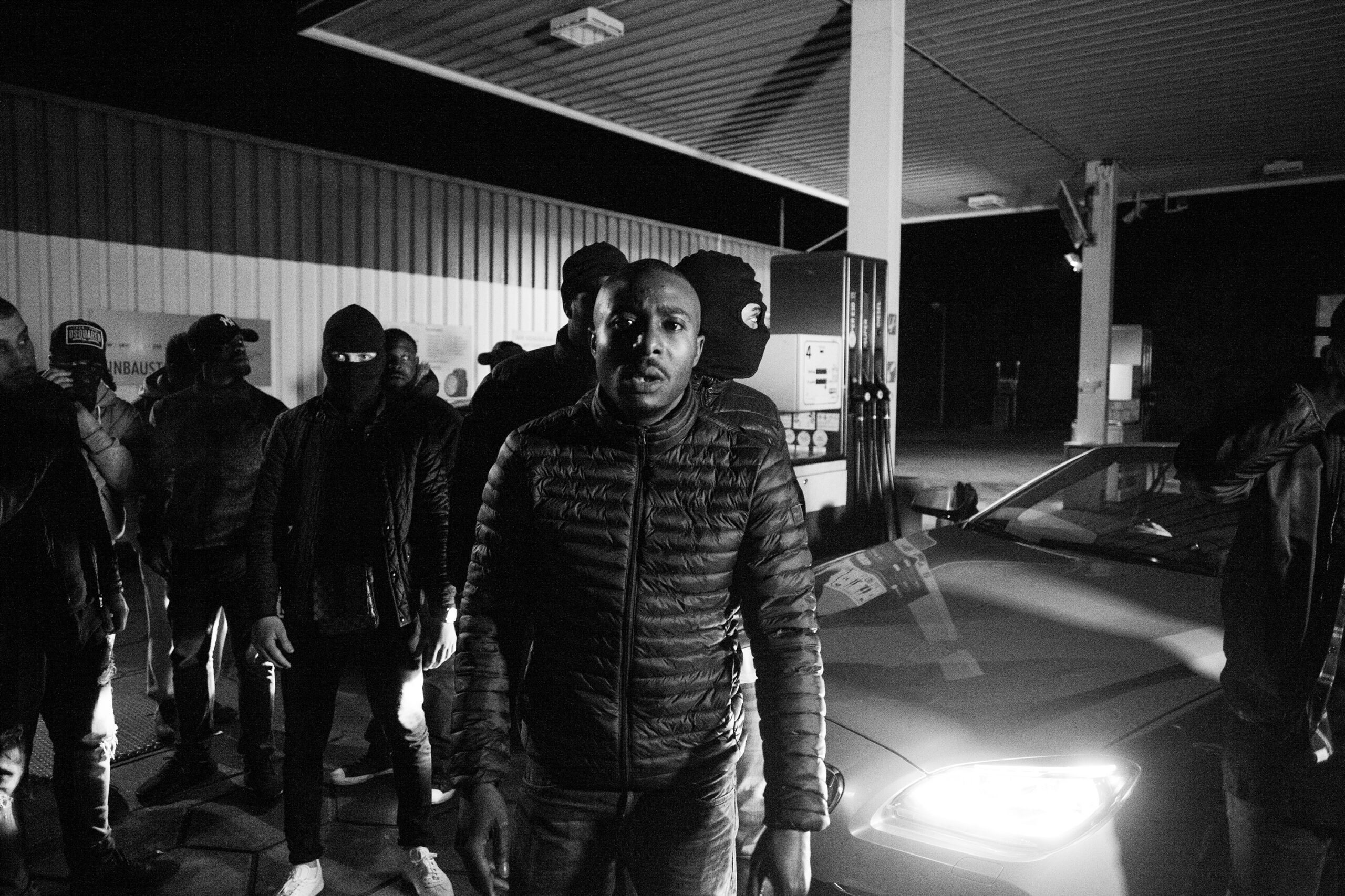 An einer stillgelegten Tankstelle am Rand von Düren stehen Dutzende Männer in der Nacht, einige von ihnen tragen Sturmmasken. Der Rapper G-Mac dreht hier die letzte Szene für seinen Song “Kalash“, als plötzlich ein Streifenwagen der Polizei im Schritttempo vorbeirollt. “Alle auf Haftbefehl sollten jetzt laufen”, schreit einer, es klingt wie ein Scherz. Aber nur wenige Sekunden später rennen knapp zehn Männer in verschiedene Richtungen und verschwinden in der Dunkelheit. Auch G-Mac.