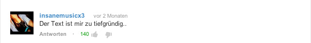 Deswegen starten wir bei You Need To Heer This die Rubrik YouTube-Commis, in der wir die zehn schönsten Kommentare zu den Videos eines Musikers auflisten. Und natürlich können wir nicht an uns halten, und geben unseren Senf zu jedem Kommentar.