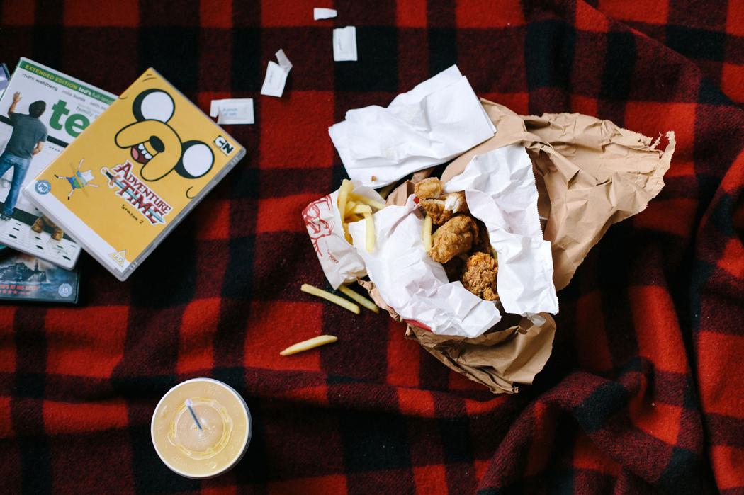 «Οτιδήποτε με κρύα αλλαντικά, φρέσκα χαλπένιος, τηγανητά αυγά, καυτερή σάλτσα Cholula, κρακεράκια καλαμποκιού, μαγιονέζα, μια μπίρα και η πλησιέστερη τηλεόραση που υπάρχει κοντά στο κρεβάτι σου. Μετά πας στο κρεβάτι και τα τρως. Μετά κοιμάσαι ξανά».