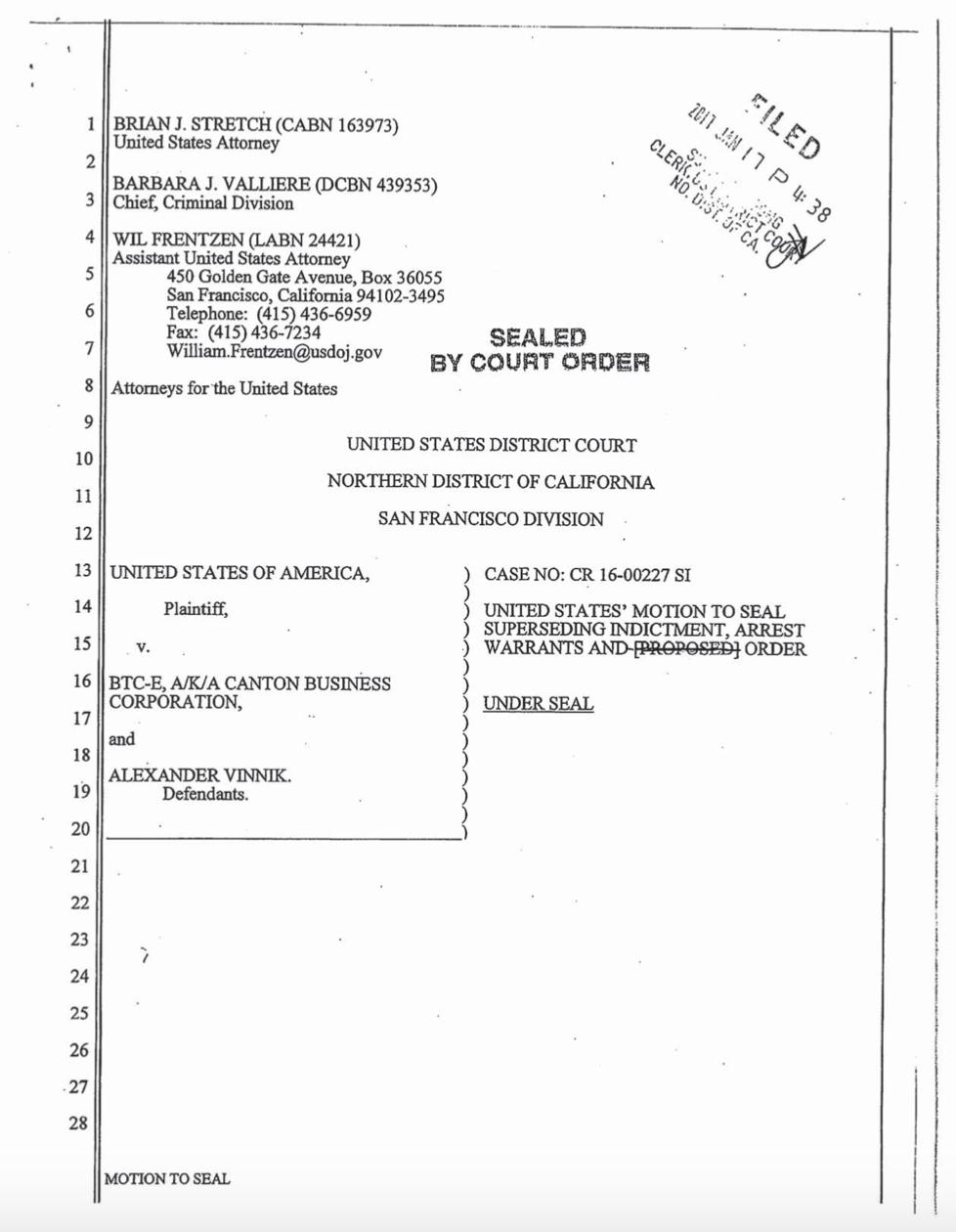 Ο εισαγγελέας της έδρας ήταν κατηγορηματικός, προτείνοντας την έκδοση του Vinnik στις ΗΠΑ. «Με σαφήνεια προκύπτει ότι ήταν ο διαχειριστής της πλατφόρμας, μεταξύ άλλων και από την κατάθεση του μάρτυρα, που λέει ότι η σελίδα έπεσε μετά τη σύλληψή του. Μέσω της πλατφόρμας νομιμοποιούνταν έσοδα εγκληματικών οργανώσεων», είπε ο εισαγγελέας. «Υπάρχουν επαρκείς ενδείξεις για την τέλεση των αδικημάτων κι επίσης στον φάκελο των αμερικανικών δικαστικών Αρχών περιλαμβάνονται όλα τα απαραίτητα νομικά έγγραφα για την έκδοσή του, βάσει και της σχετικής διμερούς σύμβασης μεταξύ Ελλάδας – ΗΠΑ. Το BTC-e είχε διακομιστή στο Σαν Φρανσίσκο».