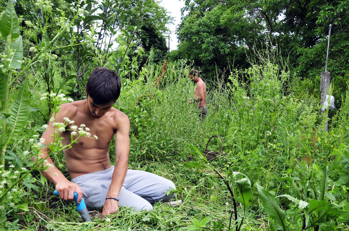 Ο Αποστόλης φροντίζει τον κήπο. Τα μέλη της οικοκοινήτητας έχουν πλέον σχέση αλληλεξάρτησης με τη φύση.