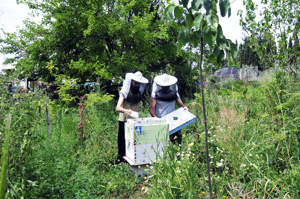 Ταΐζοντας τις μέλισσες.