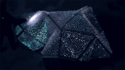 The interactive piece responds to light at certain pollination points. Shine your phone torch at it, and it will erupt back in “swarming bursts” of illumination across the surface. Sensors embedded at the end of some of the fiber optic cables will denote the reaction of the piece depending on the intensity of the light source shining on it.