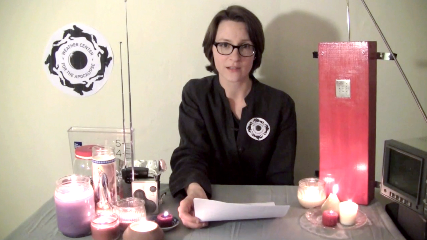 For the last couple of years, Amelia Marzec has been working on a project that points out how weather predictions don’t just affect the outdoors, they also influence culture and the sense of community needed to overcome natural disasters. Her project, Weather Center for the Apocalypse, combines DIY scientific processes with divination methods like astrology to make holistic predictions that take environmental, spiritual, and cultural influences into account.