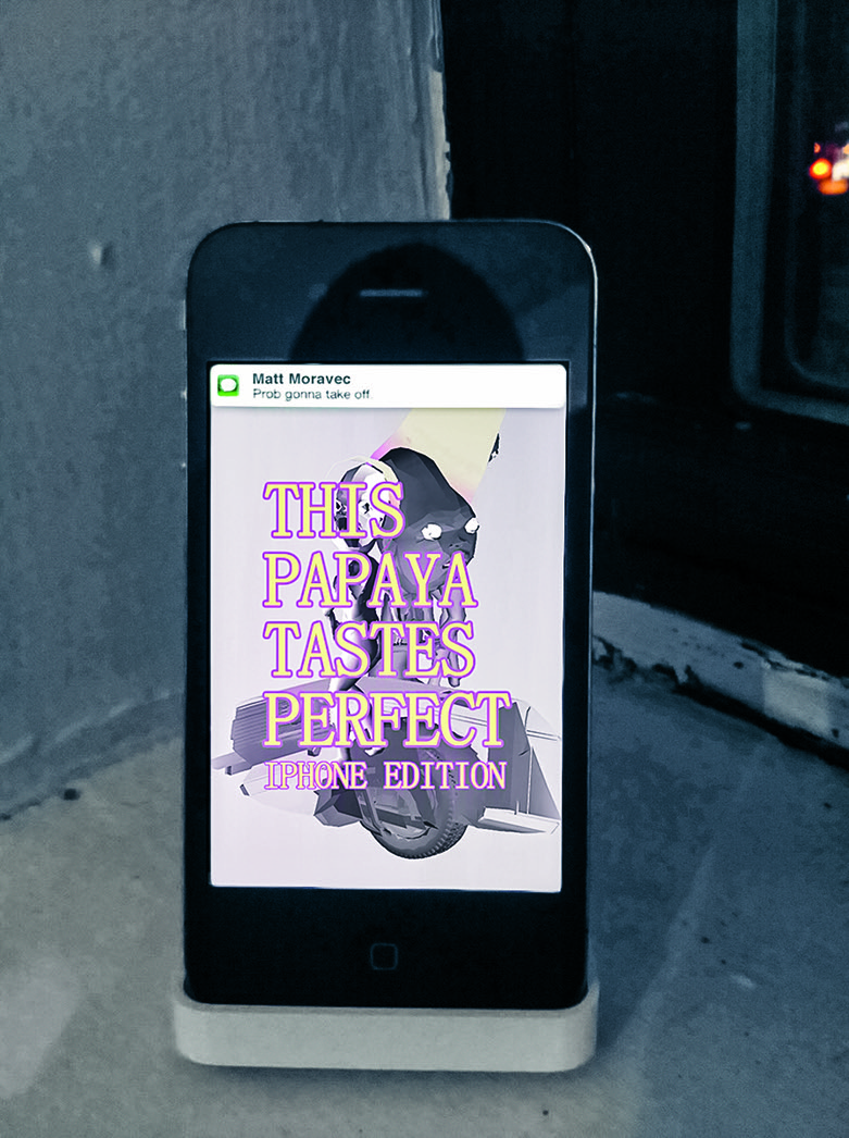 HM: I saw your work first in 2012, at West Street, the apartment gallery that Alex Gartenfeld and Matt Moravec created in New York. The piece was an animation on an iPhone, which I think was placed near a window, with the Hudson River beyond it. The figure in the video was stripped of detail—just essentials—which came across to me as both primitive and advanced.