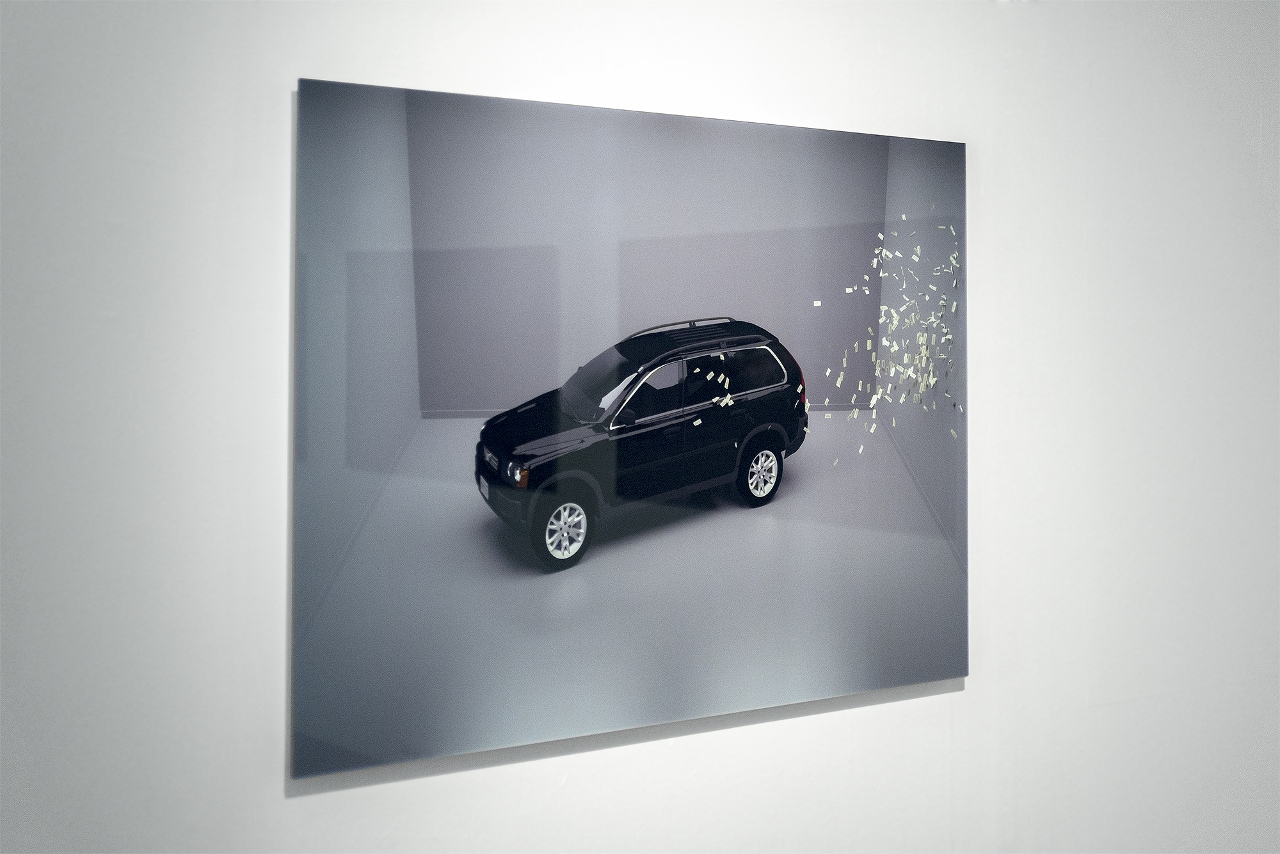 The Creators Project: First, why is there a Volvo SUV in your piece?Chris Woebken & Sascha Pohflepp: It is a visual re-enactment of an event that unfolded in Los Angeles on September 12, 2012 when a bank got robbed in the Santa Clarita area north of the city. The robbers’ getaway car was a black Volvo XC90 SUV, which was subsequently chased by police vehicles and news helicopters. The footage of robbers throwing cash out the window was streamed live to both local households and to the LAPD's situation room from where they use certain technologies to coordinate the attempt to apprehend the robbers (there are hundreds in Los Angeles every year).The whole scene resembles a shot from a movie, but on another level it is also like seeing the universe at work. We felt that the way in which this played out is telling us something about our culture of the future. Notions of determinism versus emergence in action, playing out in something as pop-cultural as an 80-minute-long car chase.