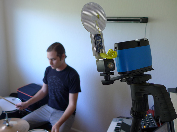 Need more functionality? Wire your Raspberry Pi-enabled OTTO up to Arduino-enabled hardware, like the "FlashyFlash" circuit board below, and with a bit of techno-magic, your GIF creations will be ever-more mutable. Below, the results of FlashyFlash, when combined with an algorithm that syncs color saturation to ambient volume: