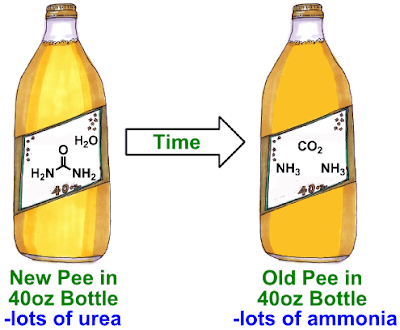 New smelly pee can become old smellier pee over time due to urea turning into ammonia