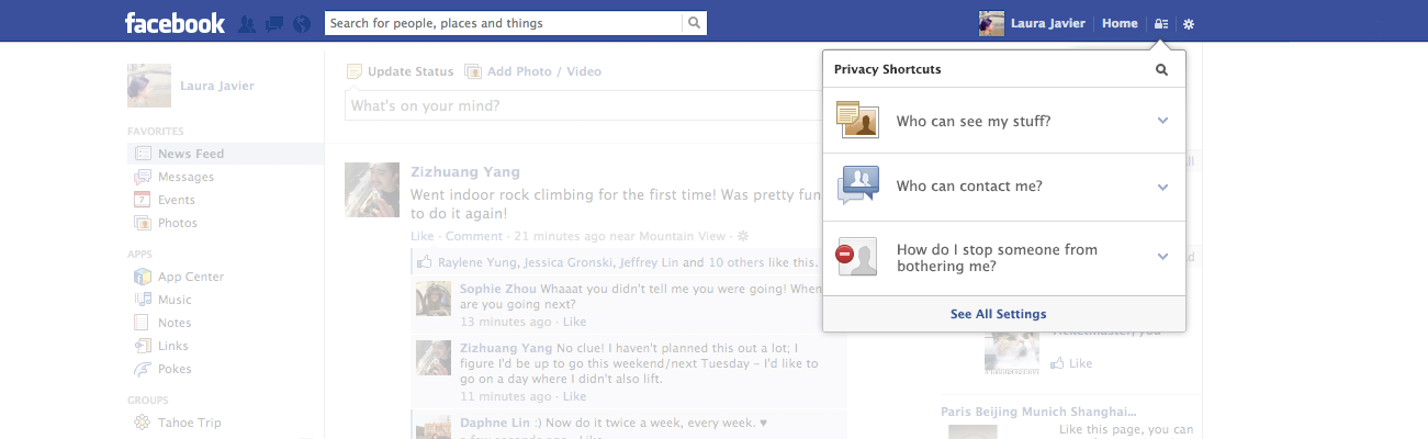 First, let's talk about the actual changes. Once they've kicked in for everyone, you'll notice a new icon on the righthand side of the menu bar. Click it and you'll find "Privacy Shortcuts," which essentially let you jump to specific parts of your privacy settings. There, you can manage how your various posts behave and who gets to see them, as well as control who can contact you. None of this stuff is new, but it is a lot easier to access. What is new, though, is the inability to hide oneself from public searches. Facebook said that not many people used this option -- though I doubt that -- and the social network is probably happy to show more listings in its directory.On top of those two big ones, Facebook has peppered in a number of smaller tweaks. You can now view the history of any type of update on the social network and more easily sort content based on who can see it. So you could ostensibly check out all of your public updates, flip a switch and see all of your private ones. Yippee. Bulk editing of things like photo tags is the last major change and perhaps the only thing that doesn't send you into the maze of Facebook's privacy settings. And yes, they're still a maze.This brings us to the reasons Facebook made the changes. Quite broadly speaking, these changes give users more control and more access to their privacy settings. It used to be really effing hard trying to figure out how to make sure your mom couldn't see the photo album from that time you and your girlfriend went to Bonnaroo. Now it's a little less hard. (That does not, however, mean it's easy.) This should make users happy, because people always like to be able to reach the levers that control their experience. "Surprises are fundamentally bad," said Samuel Lessin, one of Facebook product czars. "We're taking the most critical things and putting them in context across the whole site."It might also be read as a precursor to something bigger. Going back to Facebook's $1 billion Instagram purchase and Instagram's recent addition of web-based profiles, we can start to imagine a more integrated future, one that connects your various online identities under one umbrella. A ton of startups have tried to do this in the past few years from FriendFeed, which Facebook bought, to RebelMouse. It's inarguable that Facebook has the power to make it happen, even if it only brings together Facebook-owned profiles like those on Instagram. Eventually, Facebook will want one privacy policy that applies to everything. That is, if Facebook does head down this path.So how does this affect you? Well, the good news is that you will indeed get a few more levers to pull on your Facebook profile. If you've been hiding from everyone by making yourself invisible in search, get ready to go public. And if you think that Facebook is done dictating how its users use its products, think again.Images via Flickr and Facebook/AllThingsD