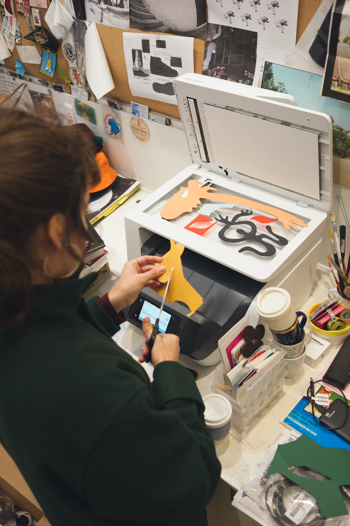 I think that even though it’s design-based, it still really reflects my artistic style. Having printing and scanning technology is integral to the process of making all this work, like when I’m sketching and cutting things out of paper that has to be scanned, then warped, and resized. There’s a lot that goes into this design process and it’s so much easier with this technology.